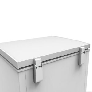 – Single flip-up lid with handle for easy access