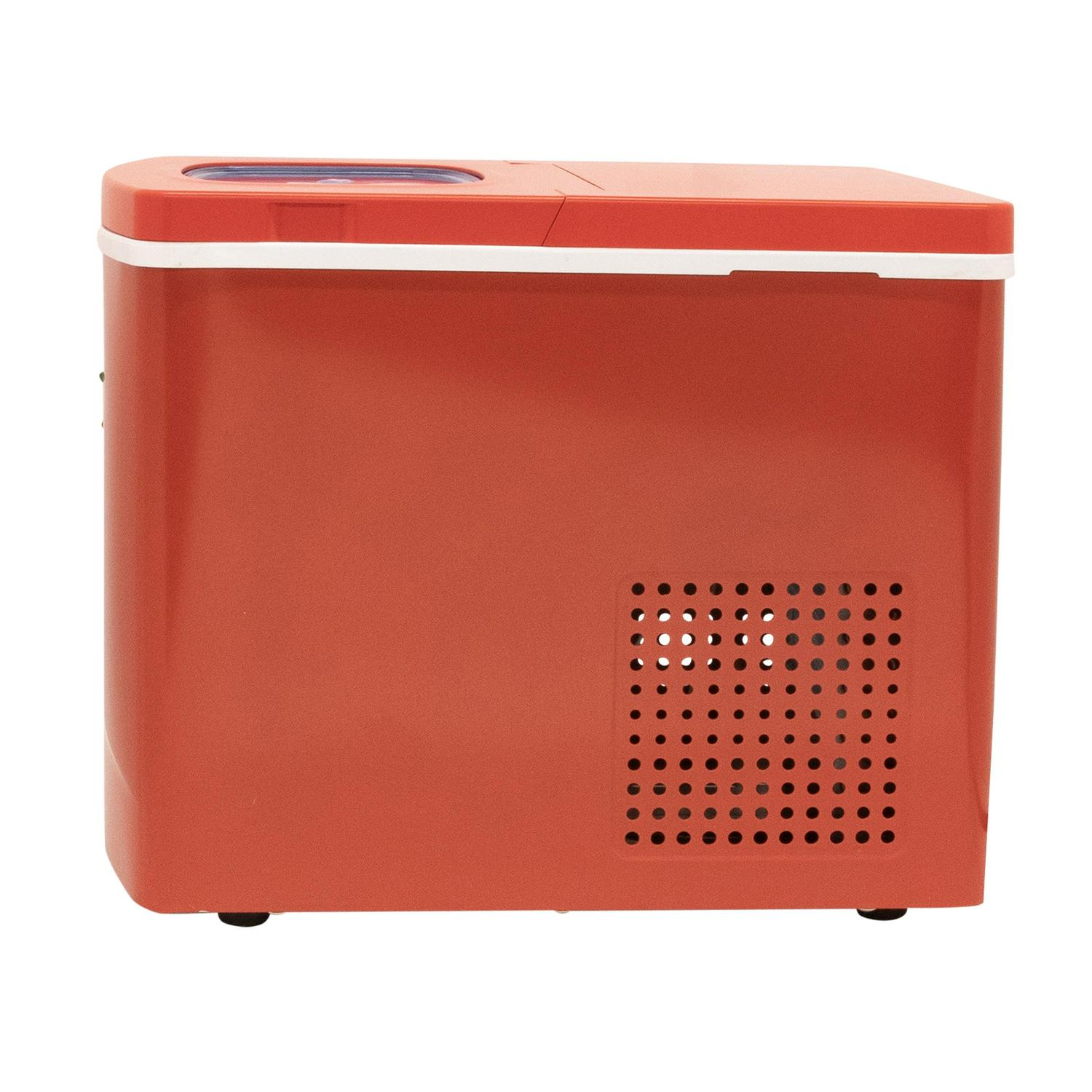 - Red ice maker complements any decor