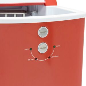 The Avanti Portable Countertop Ice Maker produces up to 33 pounds of ice daily, so you always have a supply of ice on hand. This compact ice maker is ideal for kitchen countertops as well as outdoor patios, offices, break rooms, dorms or anywhere you need extra ice. It’s easily portable and quickly produces a batch of ice in just 9 minutes, making it perfect for events and entertaining. The countertop ice cube maker produces both small and large ice cubes to suit your needs. The unit features easy-to-use digital touch controls. It has indicator lights for both ice and water levels, so you can easily monitor your ice and know when to refill the water reservoir. The self-cleaning function ensures clean and fresh-tasting ice every time, and the included ice scoop makes it simple and sanitary to scoop ice cubes. The red ice maker complements any decor. Covered by the Avanti One-Year Limited Warranty.