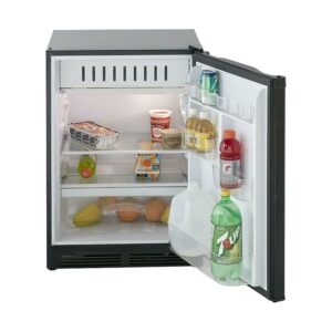 Add some fresh food storage to your basement, man cave, office, or dorm with the Avanti Compact Mini Fridge Refrigerator Freezer Chiller. This compact freezer fridge has a counter-high frame that’s easy to fit into that empty corner or add to your existing RV counterspace. While it might be compact, there’s plenty of usable space within for all your fruits, vegetables, meat, milk, and more. A removable interior clear glass shelf (with 2 position options) lets you divide up the space as you need for larger items. The door features built-in shelves for soda cans, milk jugs, and other bulkier foods. There’s even a full-width chiller compartment to keep frozen meals nices and frosty until it’s time for dinner. A vegetable crisper drawer in the base helps you keep your greens at their freshest. This beverage cooler mini refrigerator is a great option to make any small space seem even bigger and more useful.