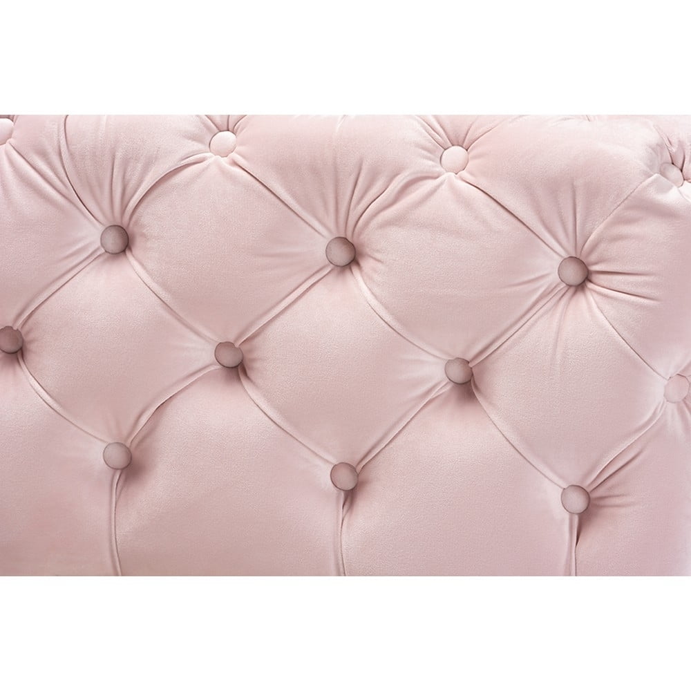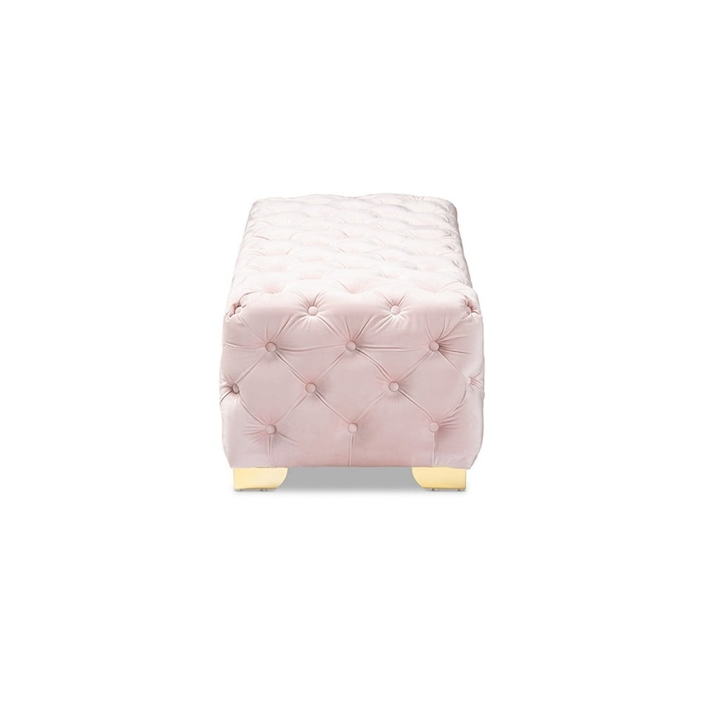 Avara Glam and Luxe Light Pink Velvet Fabric Upholstered Gold Finished Button Tufted Bench Ottoman