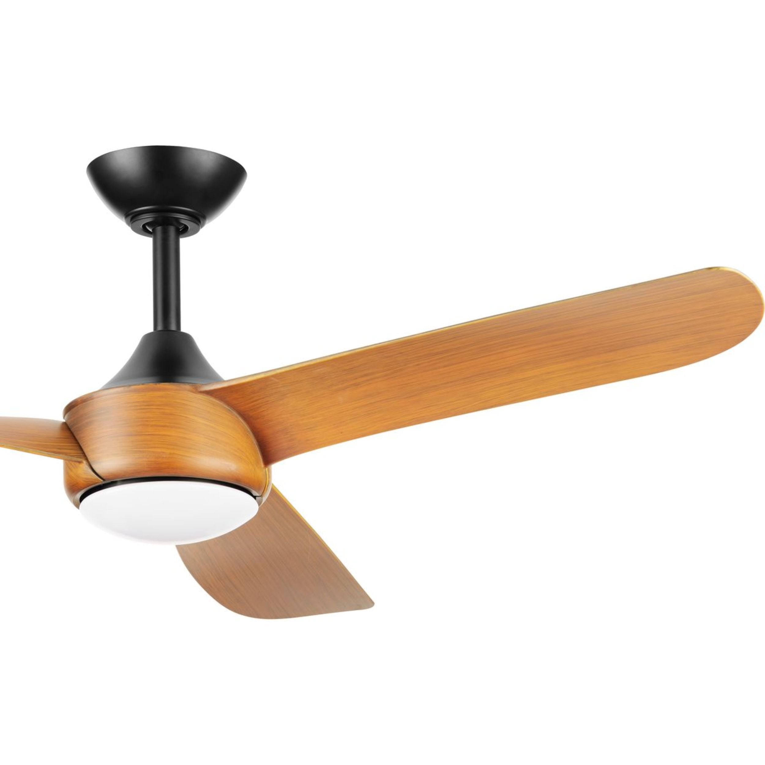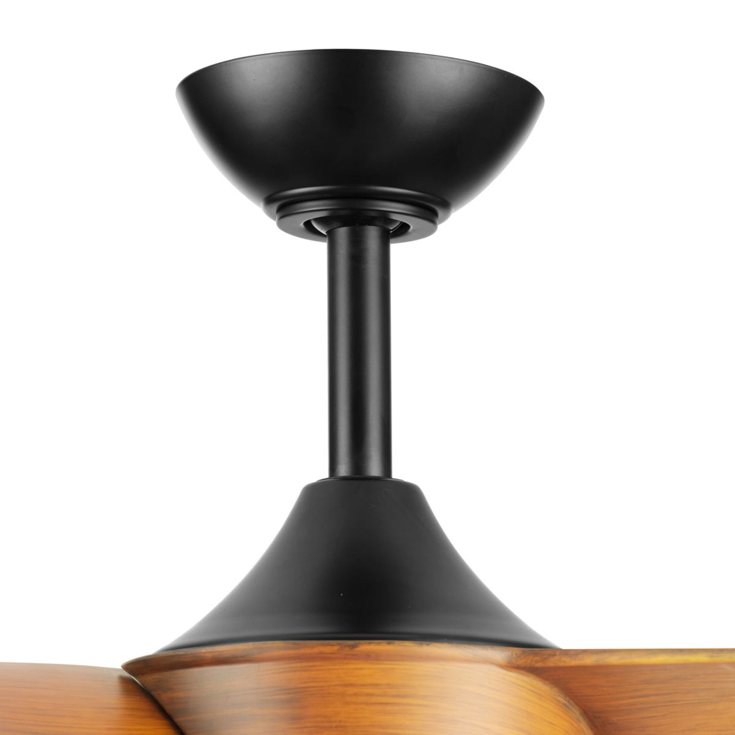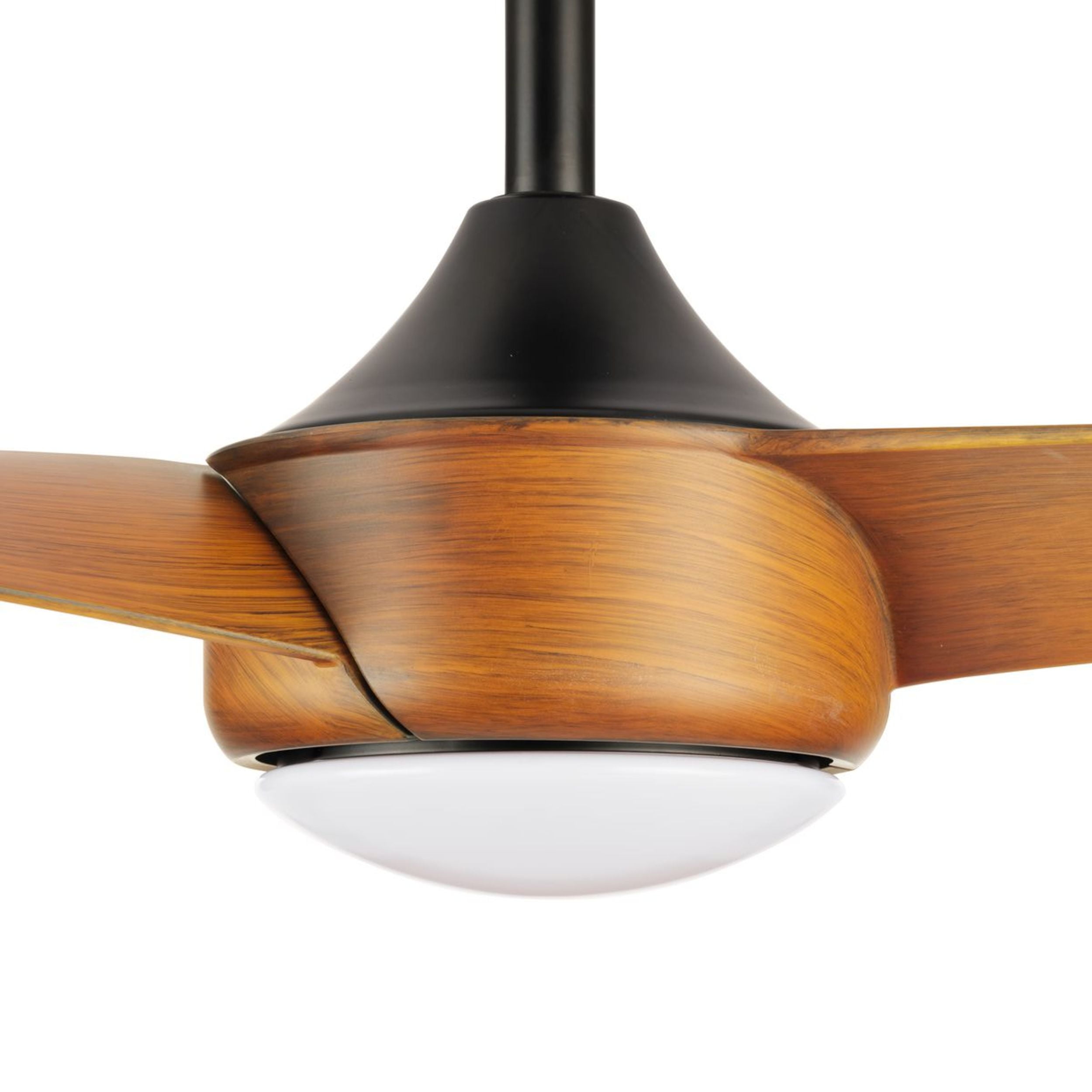 Sleek modern ceiling fan in matte black with wood-finish blades. Ideal for enhancing bedrooms, bonus rooms, great rooms or living rooms Measures: 56 in dia., 12.94 in height Integrated dimmable LED light source, 18W, 3000K cETLus Damp Location listed, enabling the fixture’s versatile use indoors or in covered outdoor areas. Our 1-Year Limited Warranty ensures your absolute satisfaction with your purchase and comes with dedicated professional after-sales customer service support.