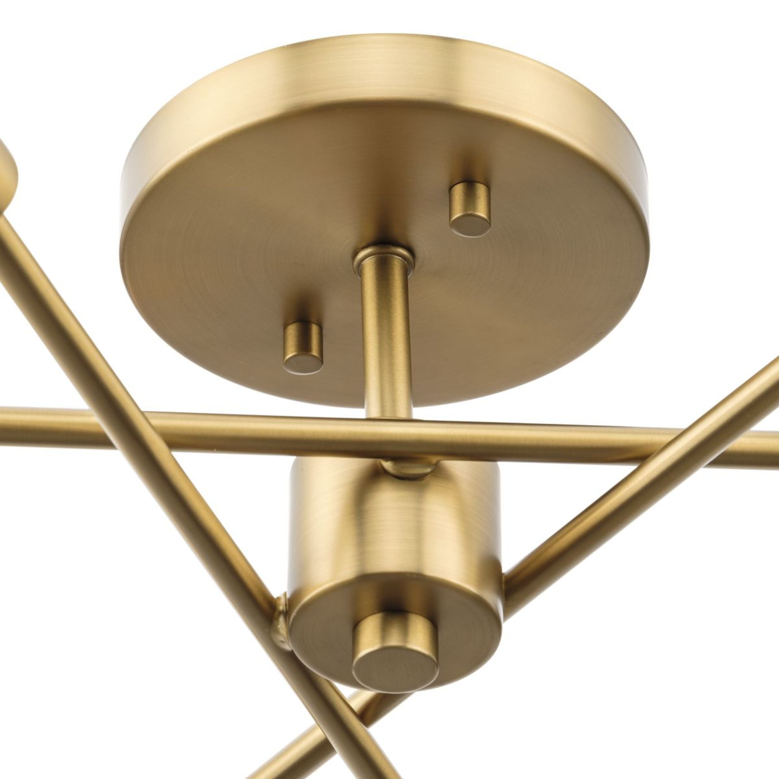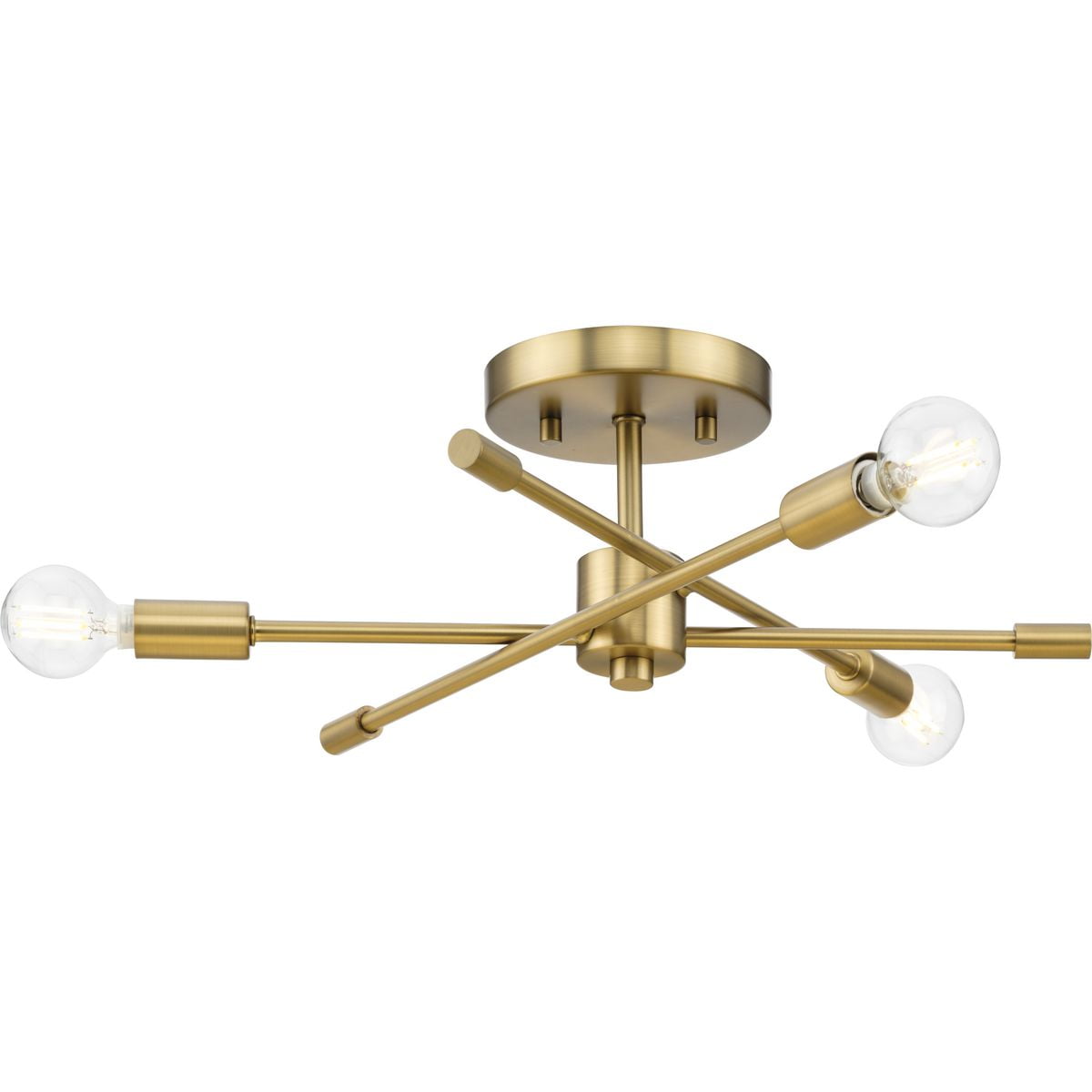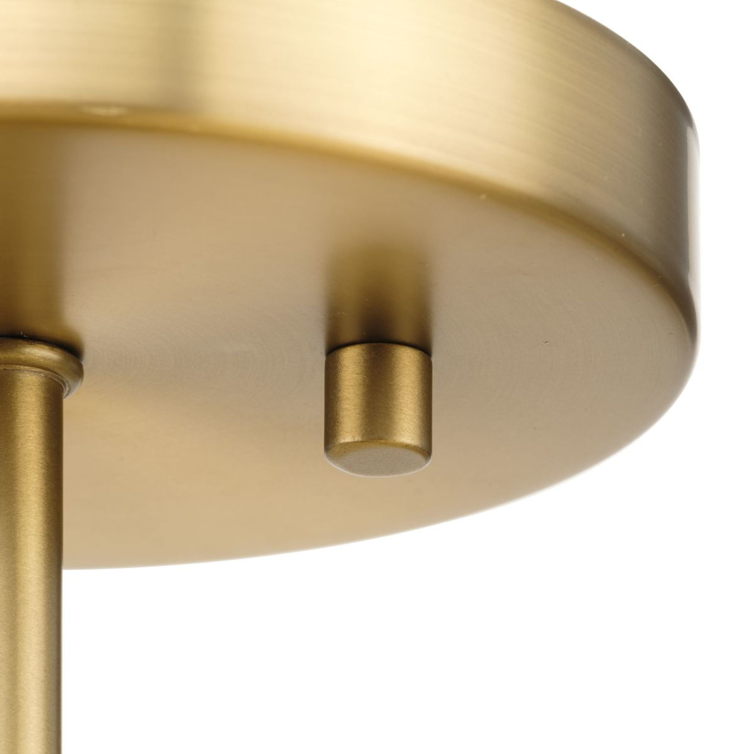 A beautiful mid-century modern brushed gold finish highlights the modern design of this luxe light Ideal for bedrooms, hallways, living rooms and inviting foyers. Measures: 18 in dia., 5.5 in height Requires three candelabra base bulbs, 60W (not included) This fixture offers dimmable functionality with the use of a compatible dimmer switch (not included) and dimmable bulbs (not included). Our 1-Year Limited Warranty ensures your absolute satisfaction with your purchase and comes with dedicated professional after-sales customer service support.