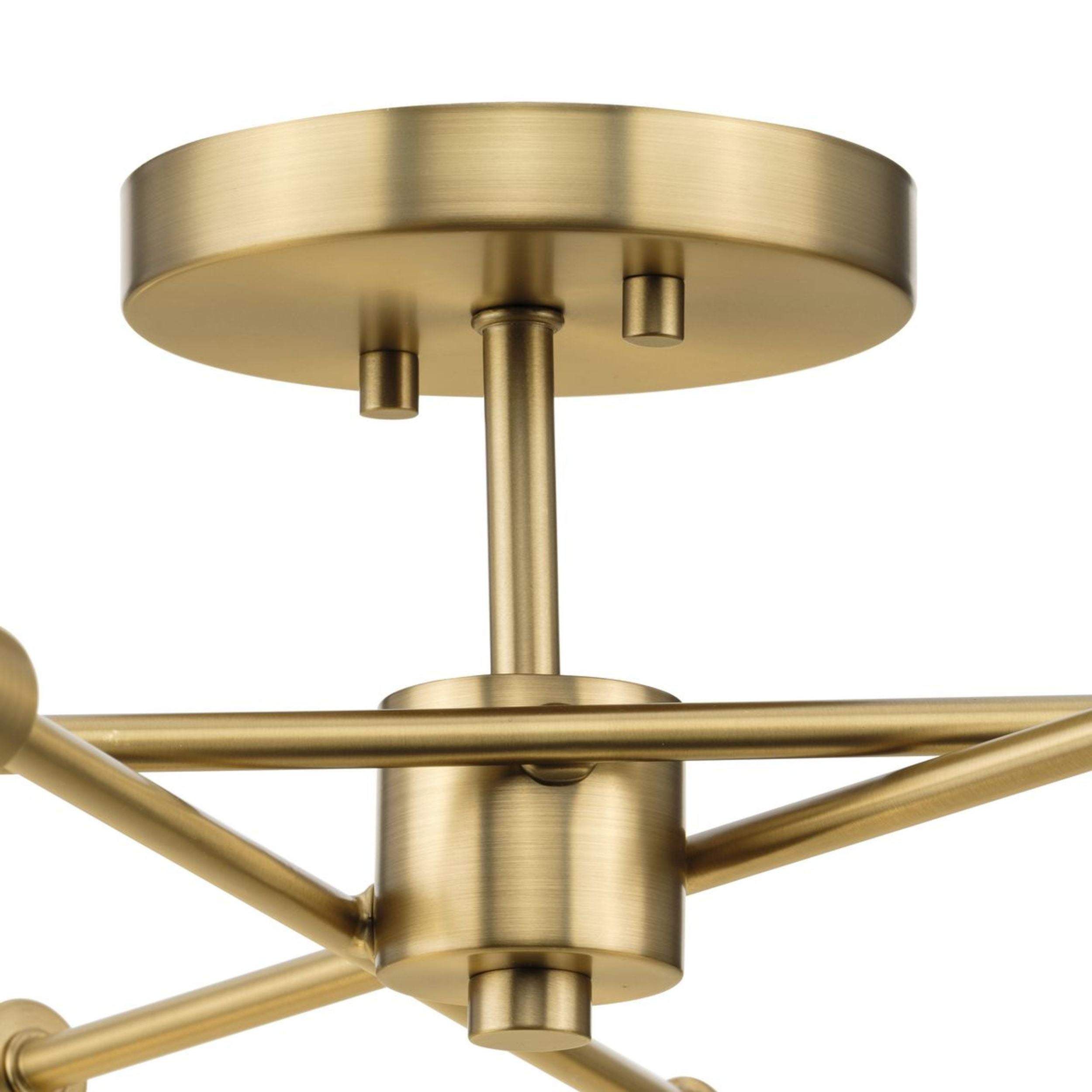 The Mondra 18” Semi-Flush Mount Light features a space-age-inspired design, making it perfect for contemporary and luxe décor. A trio of spoked arms radiate out from a cylindrical down rod suspended from a center round canopy, bringing a dynamic flair to the fixture’s design. Use clear bulbs to further the contemporary look while adding a touch of soft glamour to your room.