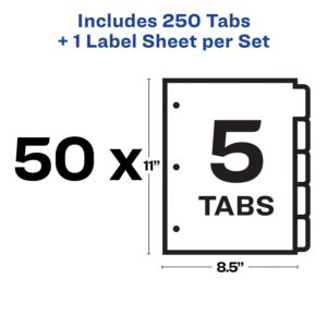 Avery 5 Tab Dividers for 3 Ring Binder, Easy Print and Apply Clear Label Strip, Index Maker Customizable White Tabs, 50 Sets (11556)