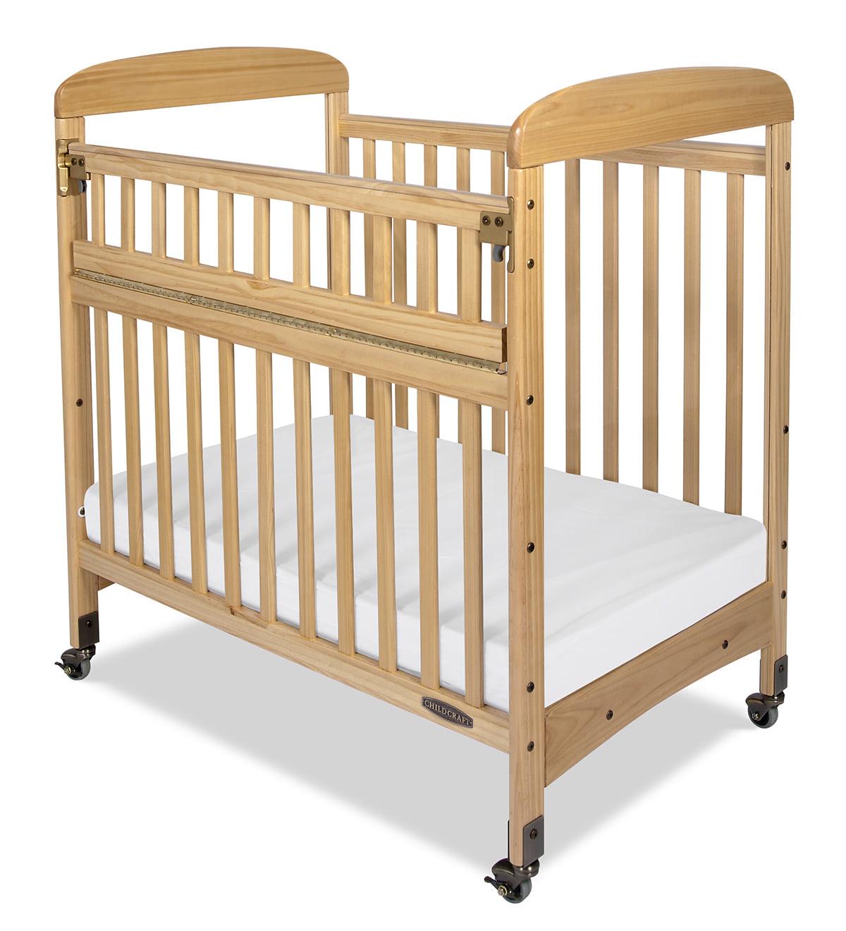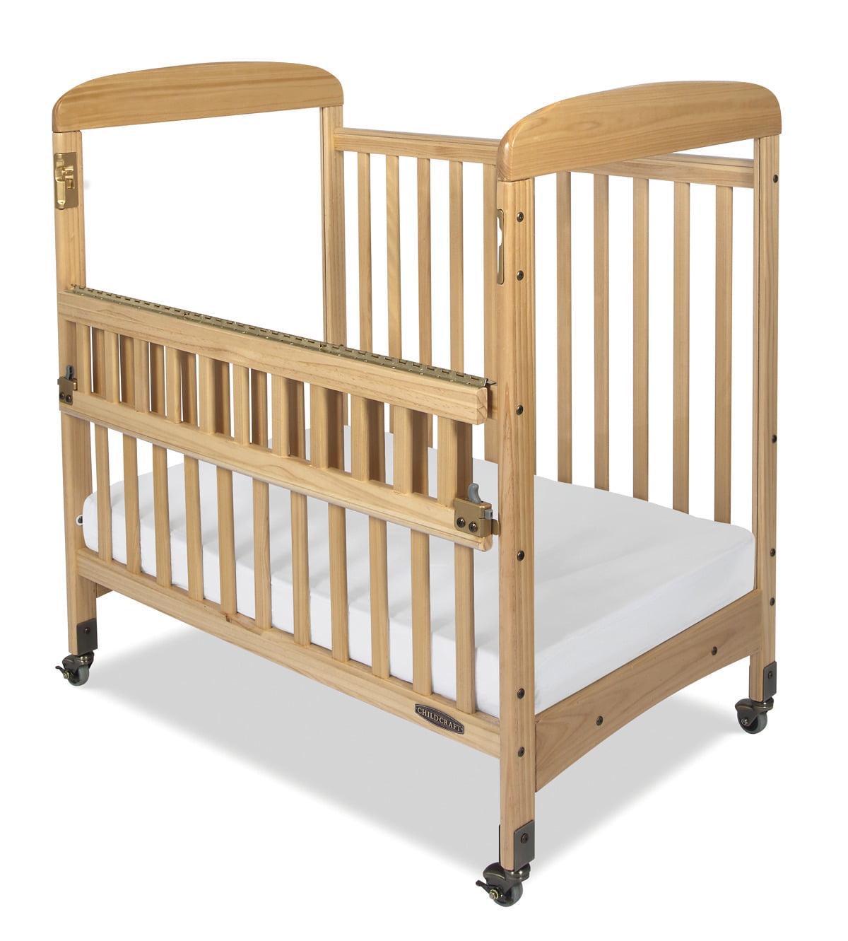 The Child Craft Avery Compact SafeAccess Child Care Crib in Natural offers superior style and function. Features a full-length SafeAccess front and Clearview end panels which allow for easy viewing of infant. SafeAccess infant access system offers a safe alternative to infant access and allows caregivers to easily access infants while minimizing back strain. Innovative hinging and latching system eliminate pinch point hazards to infants. High quality construction includes mortise and tenon joinery and high strength fasteners for superior durability.