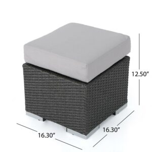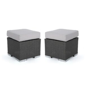Avianna Outdoor 16 Inch Wicker Ottoman Seat with Cushion, Set of 2, Grey, Silver