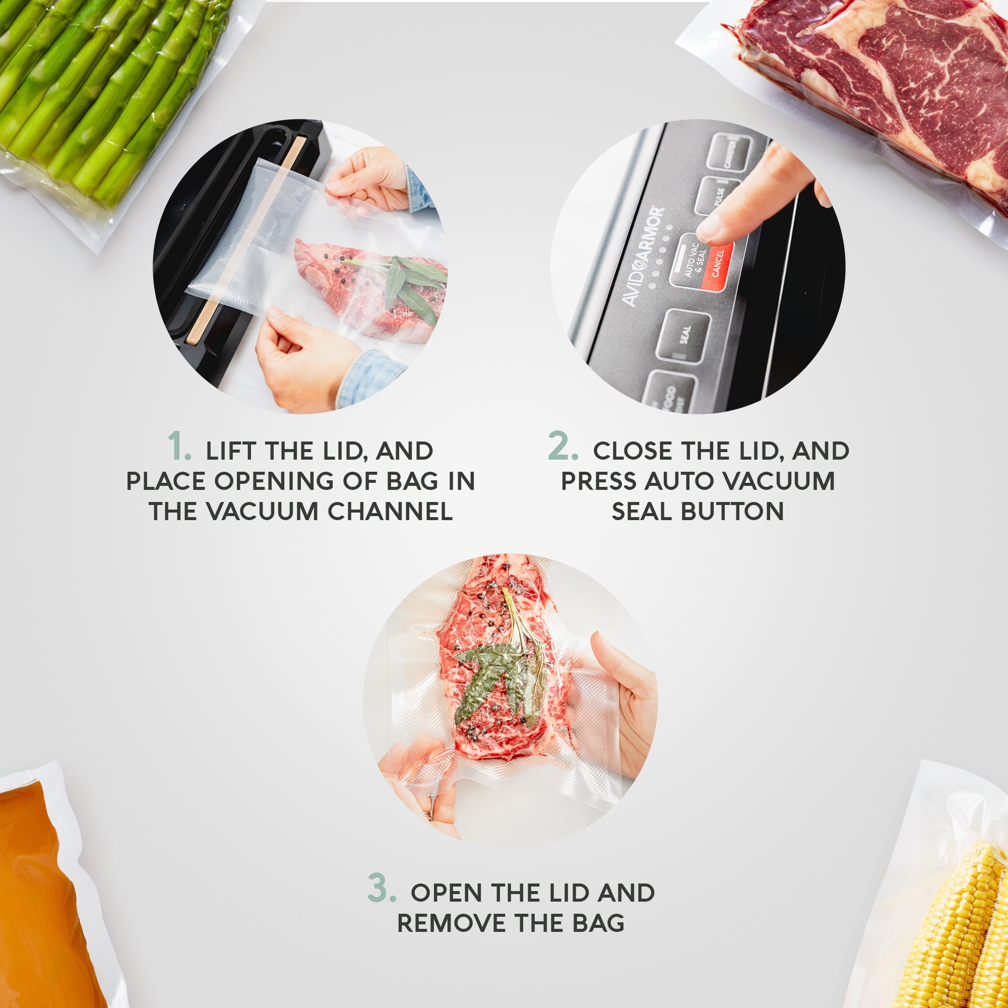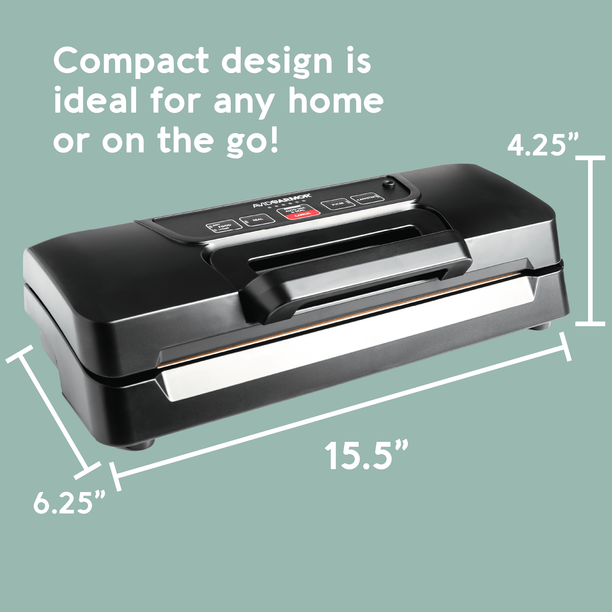Leak-Free Sealing: Keep your food fresh for longer with the Avid Armor vacuum sealer machine. This vacuum sealer provides high vacuum pressure to vacuum seal foods effectively. Preserve Your Delicacies: This vacuum sealer for food solves your problems with storing food and items in an airtight environment. For optimal freshness, only use Avid Armor’s seal bags with this food saver vacuum machine. Easy-to-Use Food Sealer Vacuum Sealer: This food sealer has straightforward, one-touch controls to ensure a perfect, positive seal. It also comes with a 12-inch vacuum seal bar and single seal wire, so you can pack more food items faster. Sleek, Compact Design: Pack individual or small, family-sized servings with this small vacuum sealer. This foodsaver vacuum sealer measures 15.5″W x 6.25″D x 4.25″H and has a locking lid for hands-free operation. Place your vac sealer machine on your countertop. Includes An Air Seal Machine Port: This vacuum food sealer comes with an accessory port to vacuum seal vacuum canisters, containers, and mason jars. Secure larger items or multiple servings using your vaccum sealer for food packs.