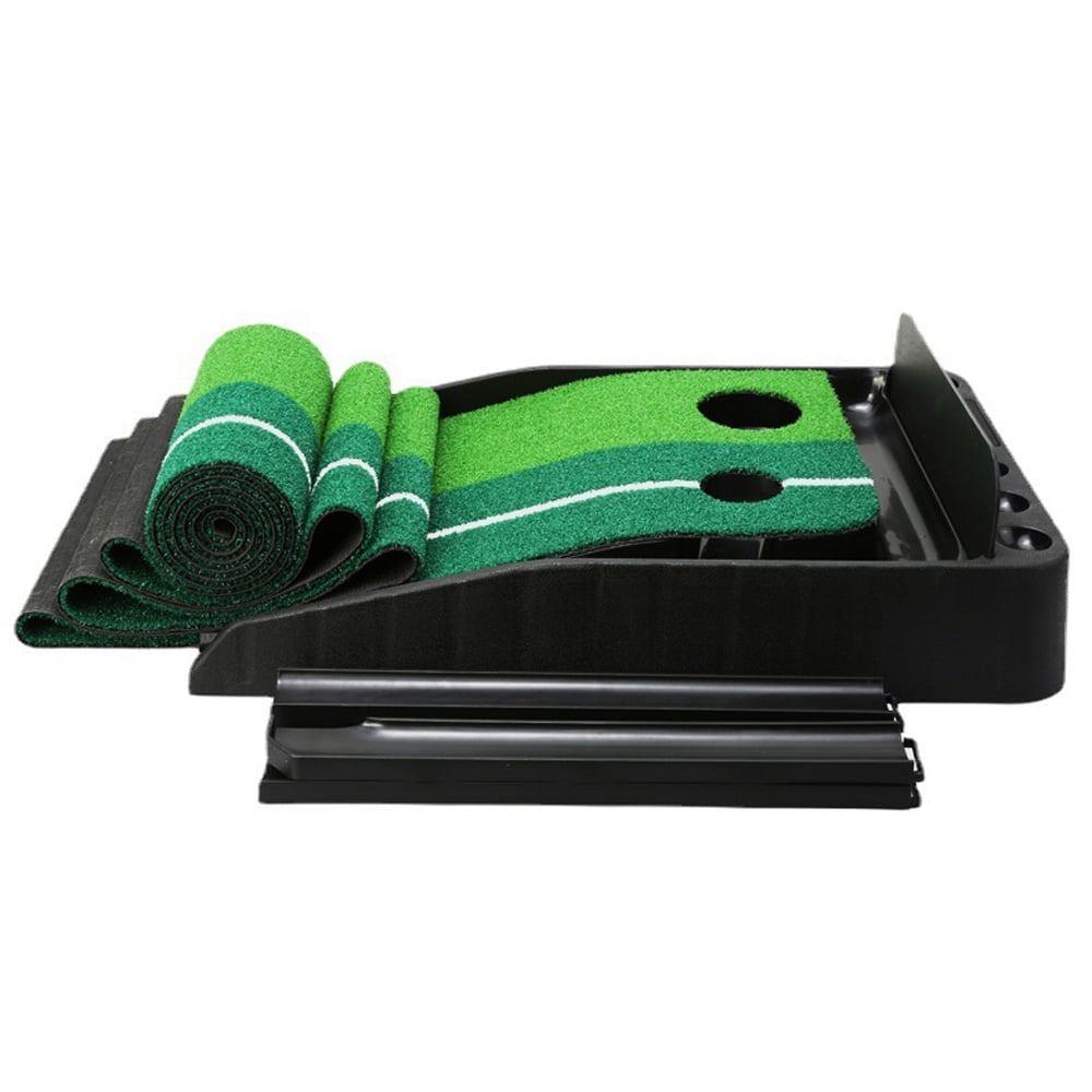 Indoor Golf Putting Green Golf Training Putting Mat Tracks With Auto Ball Return Product Description: Easily folds into a compact storage unit. Fits in any small space easily.Store in your cupboard, loft, shelf, drawer or basement! The golfing mat is specially made for safe indoor & outdoor usage. Designed to last for a long time, our putting mat will surprise you with its longevity! Designed for vigorous play, our golf mat will take the roughest of hits! 2 Hole golf mat for different proficiency levels High-intensity putting mat gets better after each intense practice session. So, take your golf club and practice with confidence! Easily pack our putting mat, store in your car and go about your travels! Its compact design & lightweight structure makes it easy for you to carry it. Easy assembly and set up means that you can start playing in a jiffy! Assembled Dimensions: 118 in x 11.8 in x 4 in. Have the ultimate fun practicing golf at your convenience, without the tedious task of driving to the golf court every single time! Simply open the indoor putting mat & you have a fully functional golfing area! Package Included: 1 x Two hole golf mat (Golf Ball NOT Included!!!)