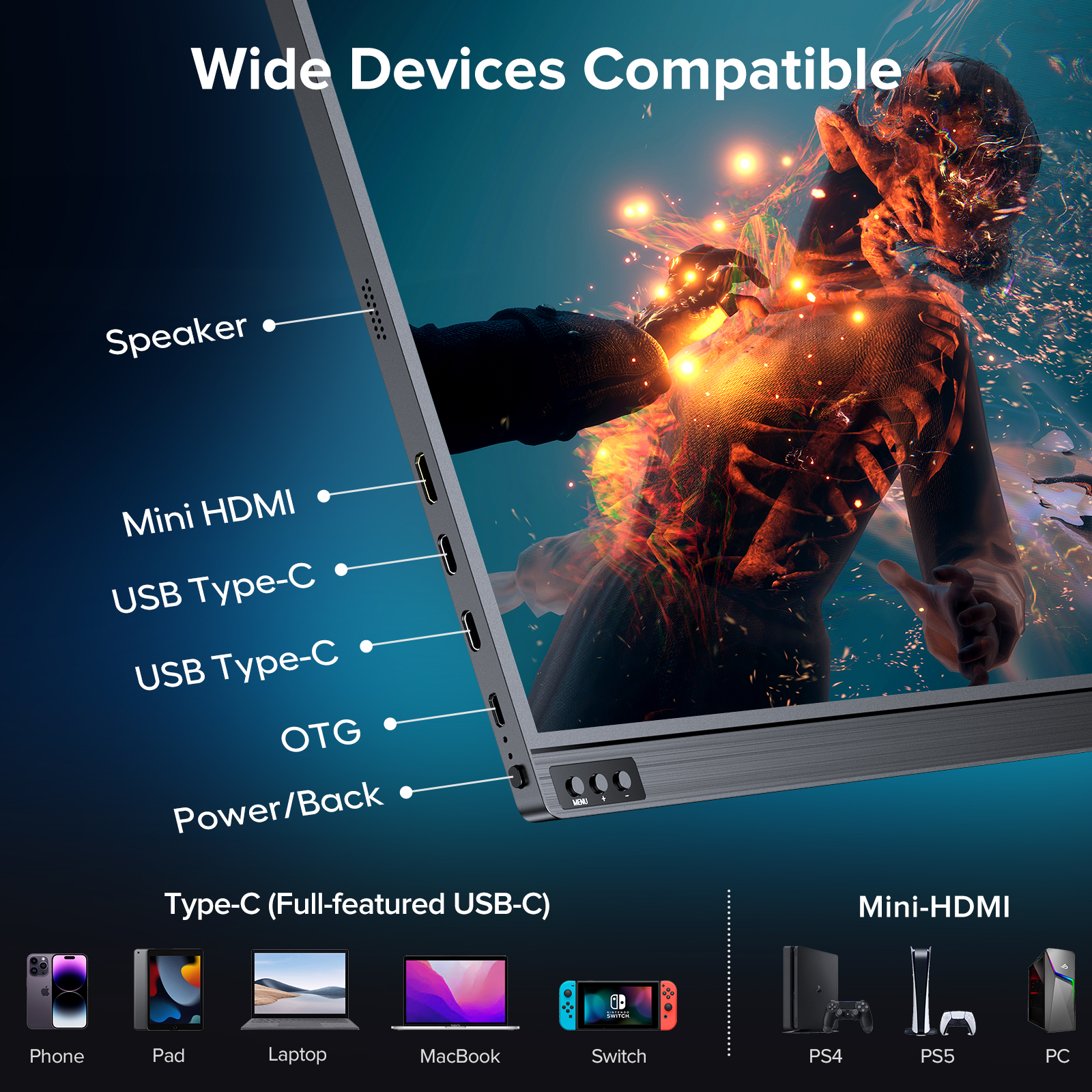 Portable Gaming Monitor: 144hz fast refresh rate, and 3ms response time, to enhance the overall experience of any game, while providing a vital advantage in e-sports, for You bring the ultimate gaming experience. Plug-and-play Monitor: USB-C monitor hdmi adopts two fully functional USB Type-C connections and a Mini HDMI port, it may be used with a laptop, a PC, a Mac, a Raspberry Pi, a smartphone, an Xbox, a PS5, a Switch, a Steam Deck, etc. Ultra-thin & Lightweight Travel Monitor: We have created a lightweight and easy to carry screen which weighs 1.37lbs and is 0.3-inch slim. Your work and entertainment gets done efficiently while you are on the trip. Connect AZMKOO to your gaming device to play anytime, anyplace. Second External Monitor: Horizontal and vertical modes could improve your work efficiency. High refresh rate also protect your eys when you looking at the screen for a long time at work. Portable computer monitors maintain high FPS rates through the use of AMD FreeSync technology, Eliminating screen tearing, lagging, and input lag to the maximum extent possible. Flicker-free and low blue light features protect your eyes from damage during long gaming sessions. AZMKOO 2 year guarantee: AZMKOO grants a 100% money-back guarantee for all problems within 90 days, a 2-year guarantee and a technical service 24h answer. Package: 1* Portable Monitor for Laptop 1* Mini HDMI to HDMI Cable 4K 1* USB-C to USB-C Cable 1* USB-C to USB-A Cable 1* 5V 3A Power Adapter 1* Magnetic Smart Cover 1* User Manual