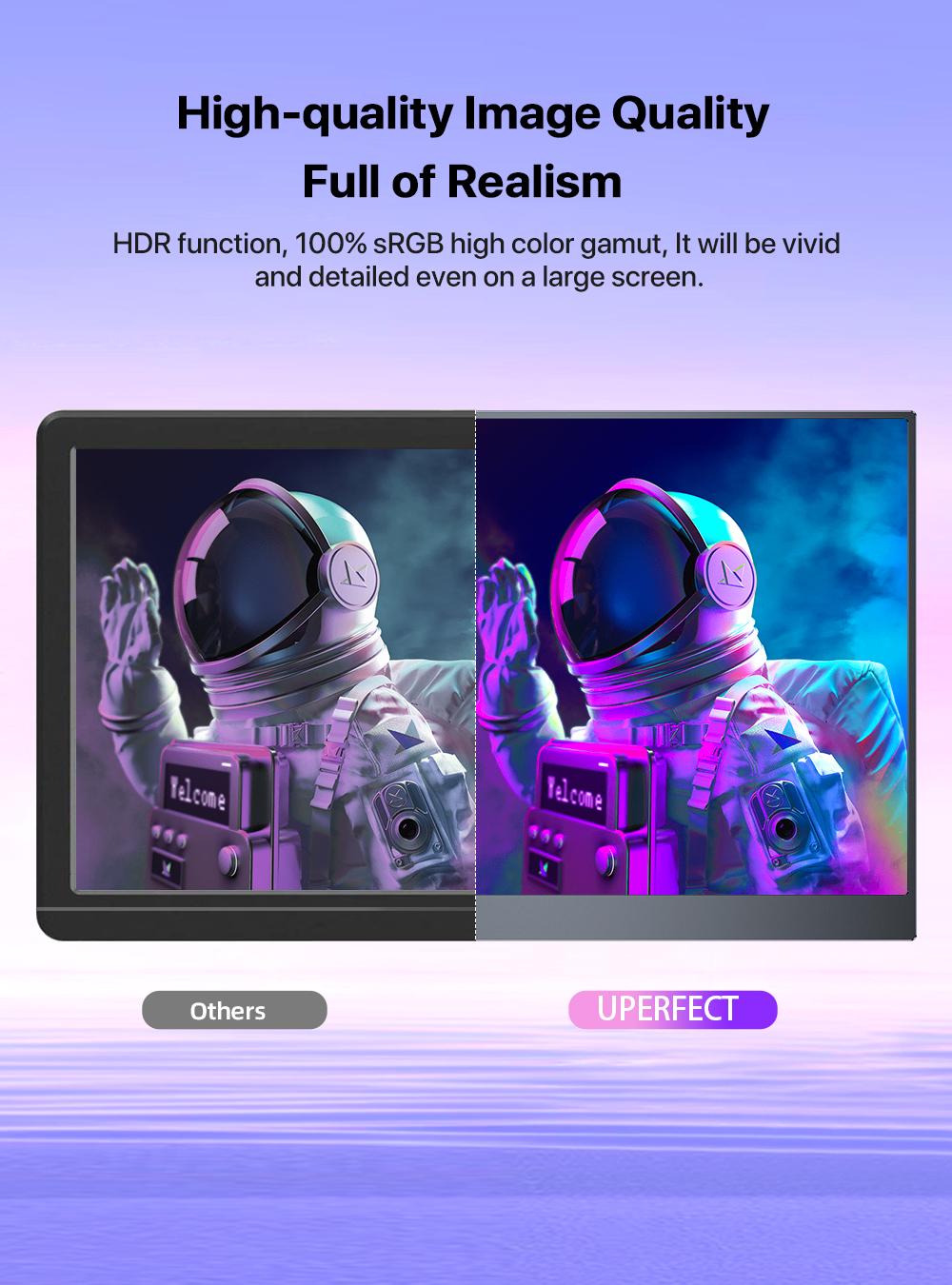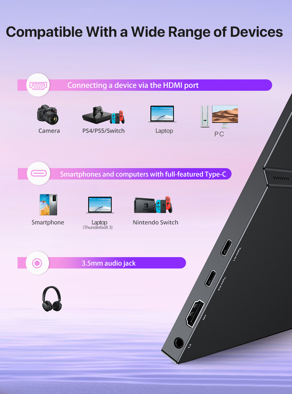 AZMKOO 17.3″ portable monitor that perfect for both office and gaming will offer you more vivid colors and crisp images with the stunning 1920×1080 resolution. With the 1000:1 contrast ratio, 100% sRGB color gamut and 178° viewing angle, you’ll have truly immersive viewing experience. Eye-care technology(Blue Light Reduction) also helps keep your eyes from getting tired during prolonged use.
