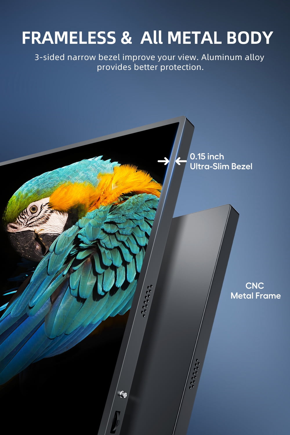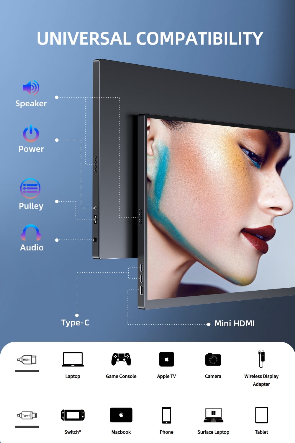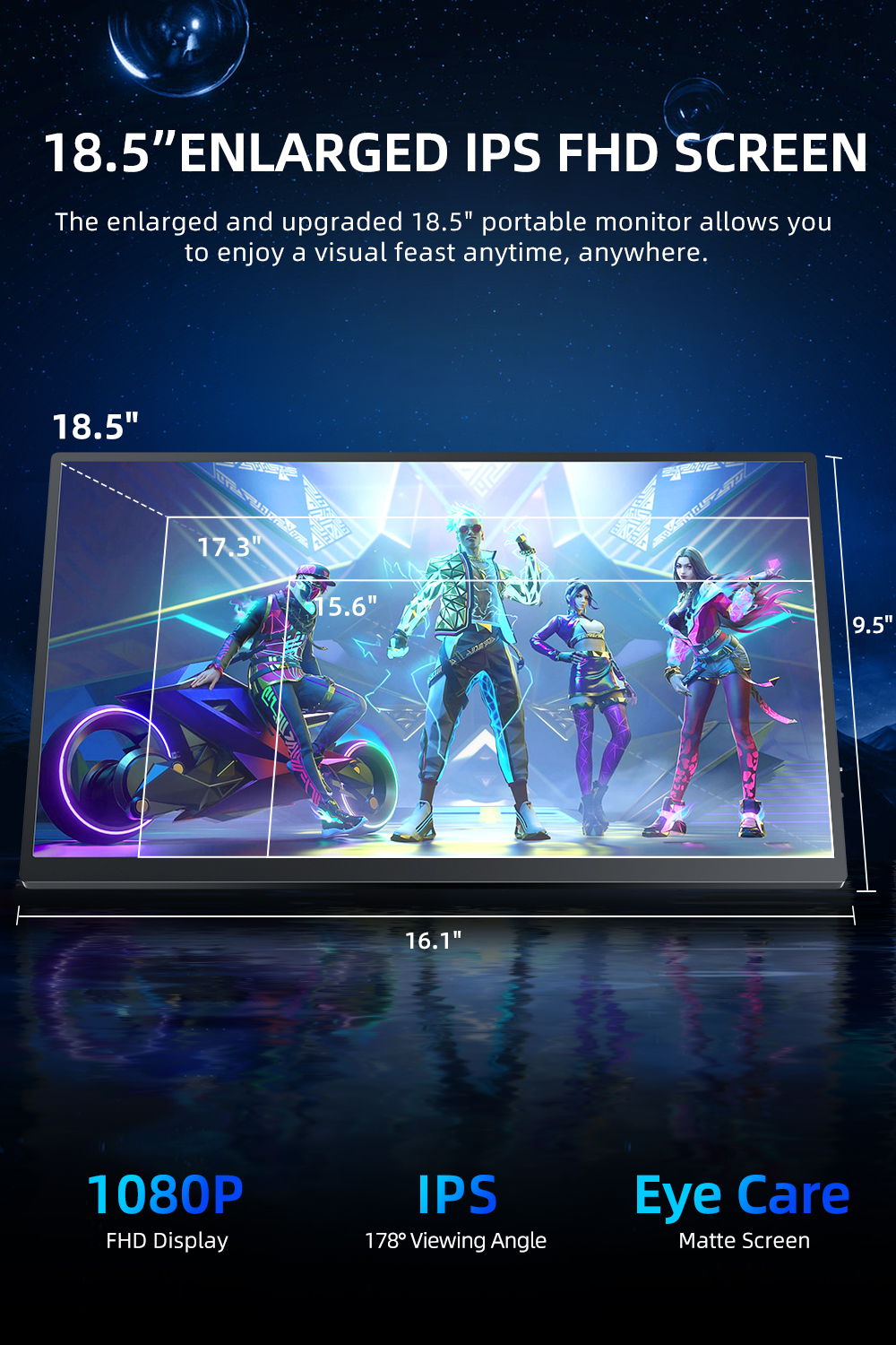 AZMKOO Widest & Largest 18.5″ IPS Screen offers Most Astonishing viewing Experience Large 1080P Portable Screen: AZMKOO 18.5″ full HD 1920 x 1080 resolution laptop monitor delivers you a vivid image, clear motion and detail. only one USB Type-C Cable is needed for power supply & signal transmission. Widely Compatible: With dual full-featured Type C and mini HDMI port, the portable gaming monitor is compatible for laptops, PC, Raspberry Pi, Phones, PS5, XBOX, Switch, etc. Perfect choice for business presentations, games, videos, TV series, photos, etc. 3 in 1 Display, Dual Speaker: 3 in 1 display mode: duplicate mode, extend mode, second screen mode. You can place the computer monitor landscape or portrait mode according to your needed. Monitor with Smart Cover: AZMKOO New condition 18.5 inch travel monitor comes with PU magnetic smart case, which provide excellent protection for the entire monitor, can also be folded into a stand to support the monitor.