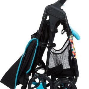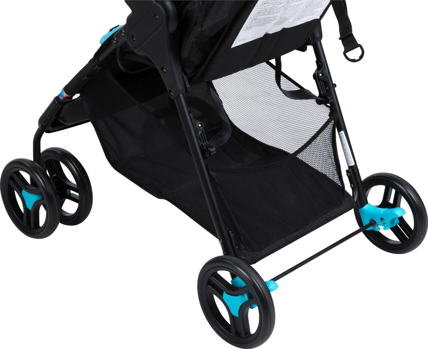 - Feather stroller has an easy lift and fold feature that makes folding a snap