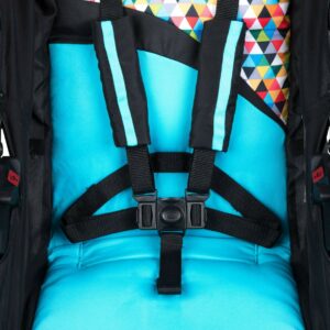 - Boho stroller has a 5-point harness with comfort covers