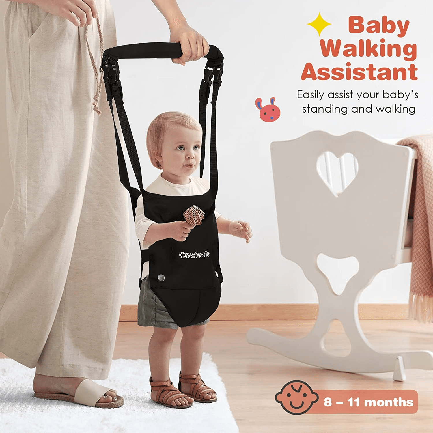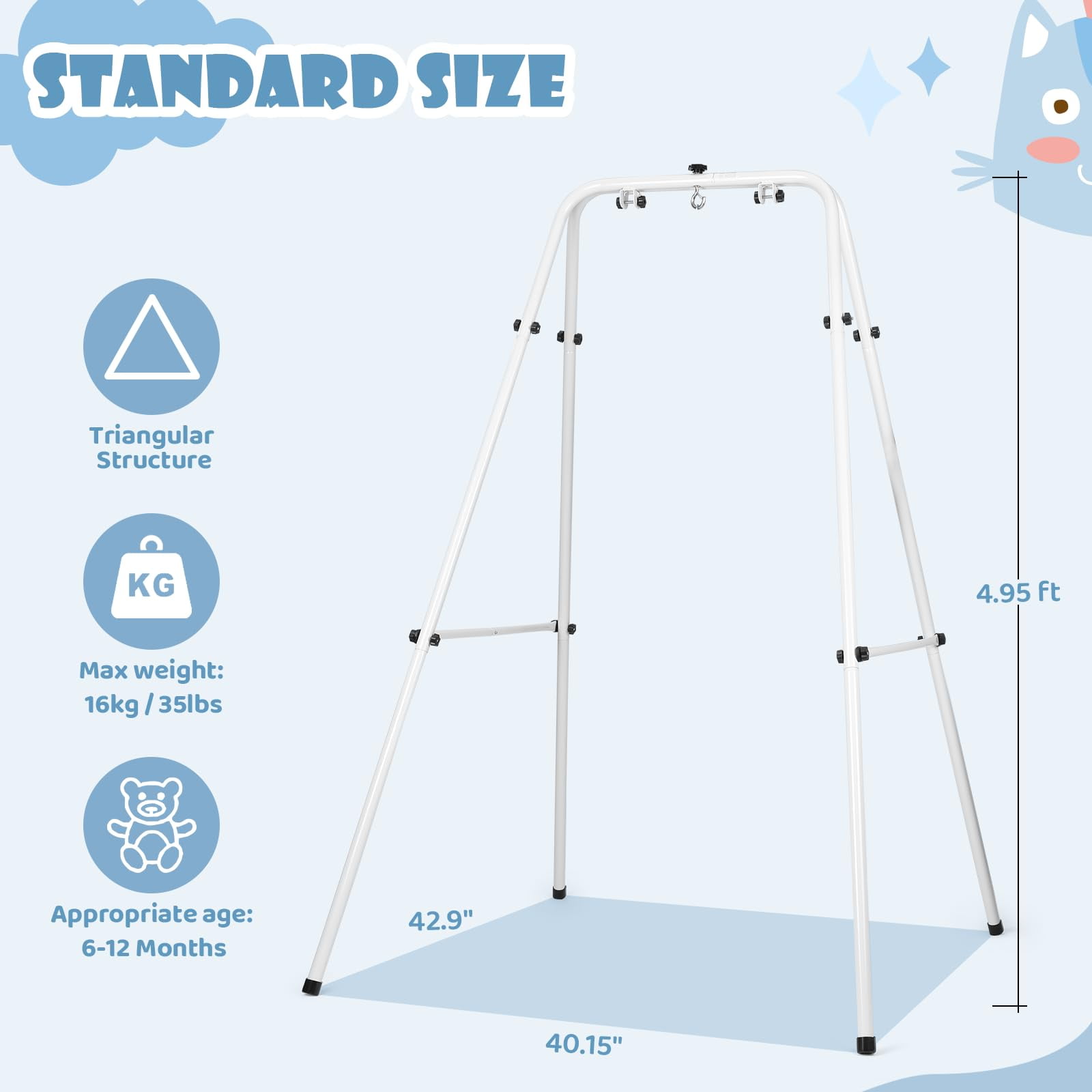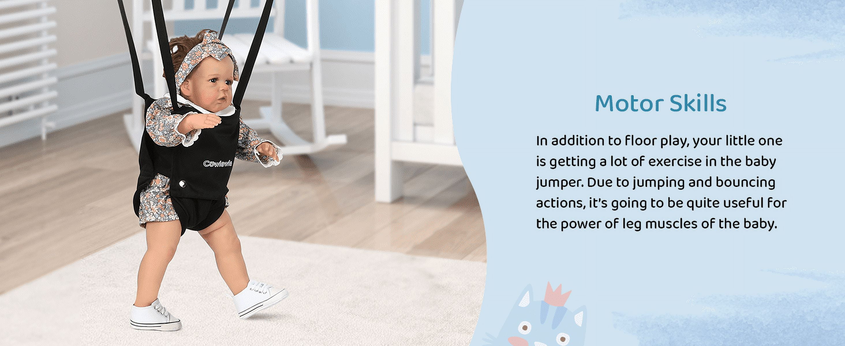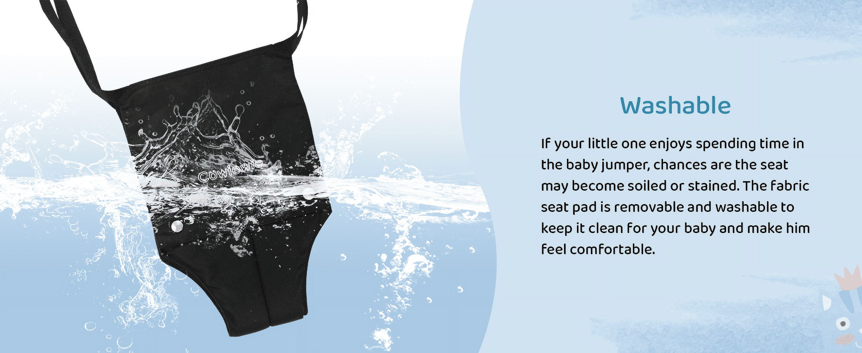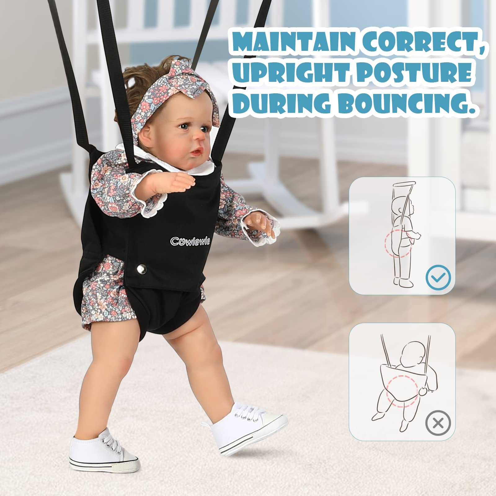 ➕【Multiple Comfort Feeling】The seat pad is breathable 3D mesh design and mutiple-layer cotton, no worry hurt inner thighs. The wide and firm velcro seat belt and jumper height is adjustable, as your baby gets taller(Chain adjustable up to 16in) ➕Helps supports baby’s spine firmly, ensuring correct, upright posture during exercise. Even a big baby easily has room to bounce. So you can ensure your baby’s feet are optimally positioned on the floor for proper development. 【2 in 1 Baby Exerciser and Handheld Walker Helper】When your children too young to walk, the standing jumper helps infants build balance, develop coordination and rhythm, as well as strengthens leg muscles. Also baby gets tired from all the jumping so sleeps better. When your children start learning to walk, just take down the seat pad, then add it with a hand-held walker, you can easily assist your baby’s walking without breaking your back ➕【Multiple Safety Support】This baby jumper is a lot safer than the one that you just hang above the door, no risk of child running into the door frame and getting hurt ➕Compared to others, we upgrade double iron chain hook, add the safety rope in the stainless steel spring, add cloth cover to the outside of the spring to prevent the hand from being pinched. The outer triangular frame is aslo so stable that it is difficult for even an adult male to shake it. Absolutely protect your baby safety! 【Easy Assemblely and Portable】 Clear and detailed instructions, you only need no more than 10 minutes to assemble it. As well as fold up when finished. Assemble size: 40.15x 42.9in, package size: 27.9×13.5×3.7in, package weight: 15.5lb Because of its simple fold-flat design, perfect for on-the-go use, whether that is to grandma’s house or on your next camping trip. It will fit in the trunk of your car while still allowing you enough room for your other luggage. ➕【Warm Tips】The jumper can hold up to 50lb (22kg), suitable for 6-24months infant. Expert suggest that a baby can start using a jumper once they have strong, independent head control. 【Great Entertainment for Happy Childhood 】Jumpers provide great fun for babies and a break for parents. Mom working next to her, quietly enjoying her “me time.” It allows the baby to turn around and watch you as you clean house etc and gives the baby independence to move and turn and jump. Let baby see the world from a new perspective. Hearty chuckles and big smiles whenever baby in it. Nothing sweeter than the sounds of a happy baby getting exercise ➕【Easy to Clean】Soft seat pad is removable and washable,very convenient, no need to worry about cleaning ✅【ASTM Certification】ASTM F963-17 Standard, meet Consumer Safety Specification for Toy Safety ➕Pipe diameter:25mm