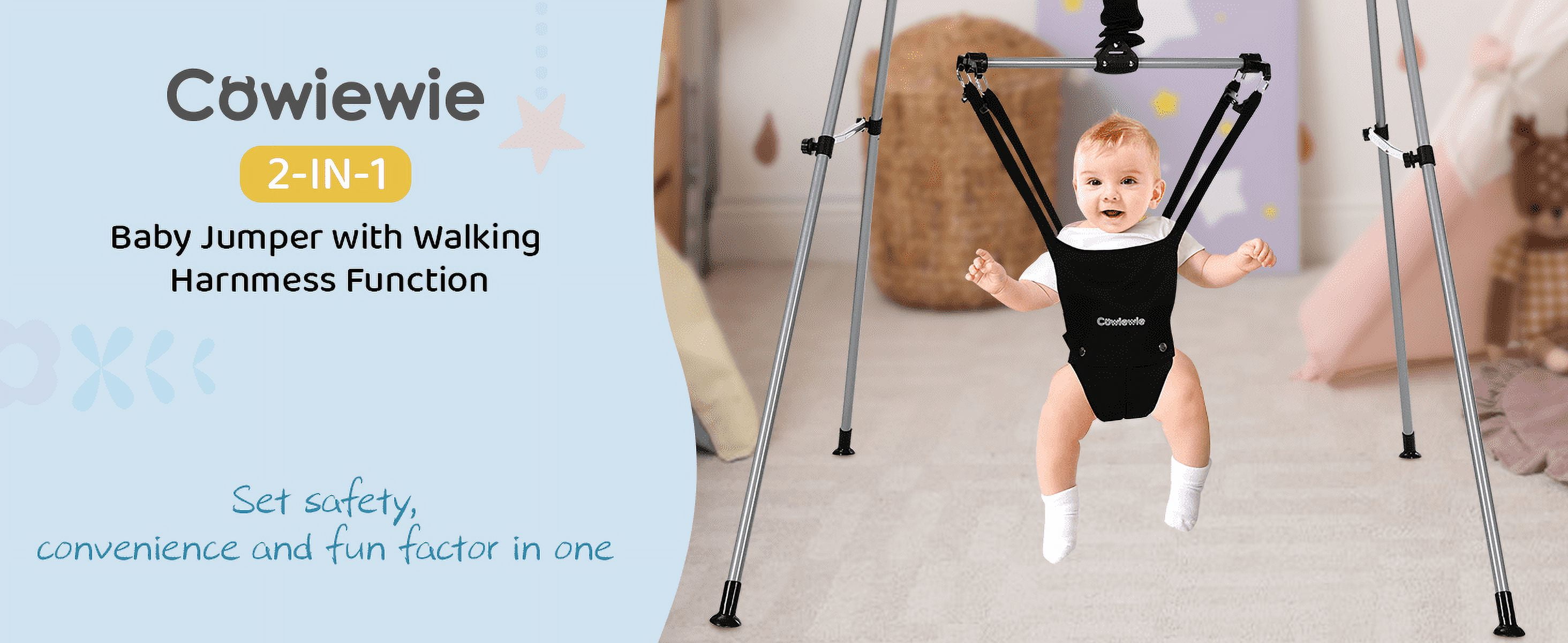 Cowiewie 2 in 1 Baby Jumper Bouncer or Walker for Activity Center for 6-24 Months Infant, White+Black
