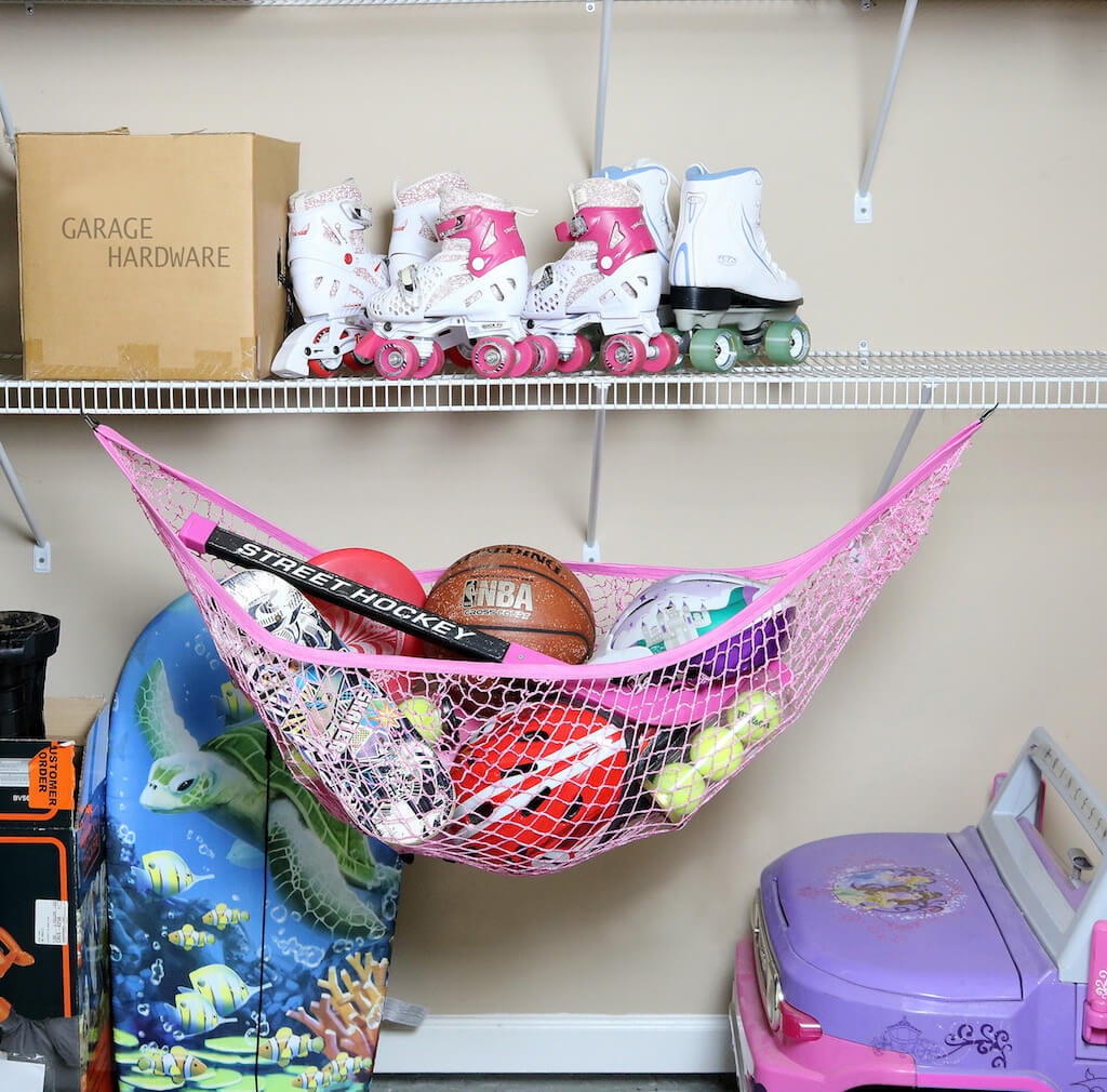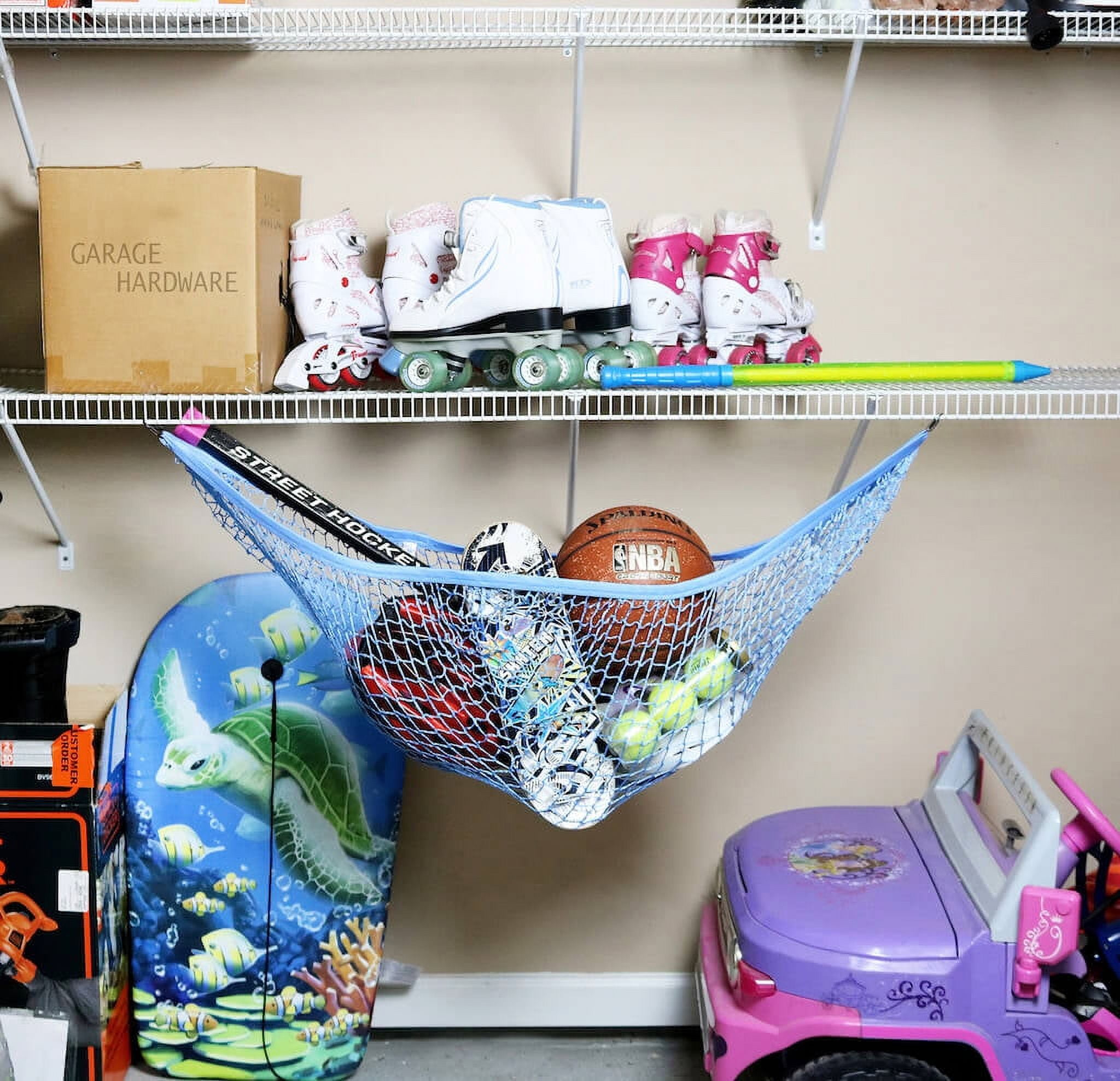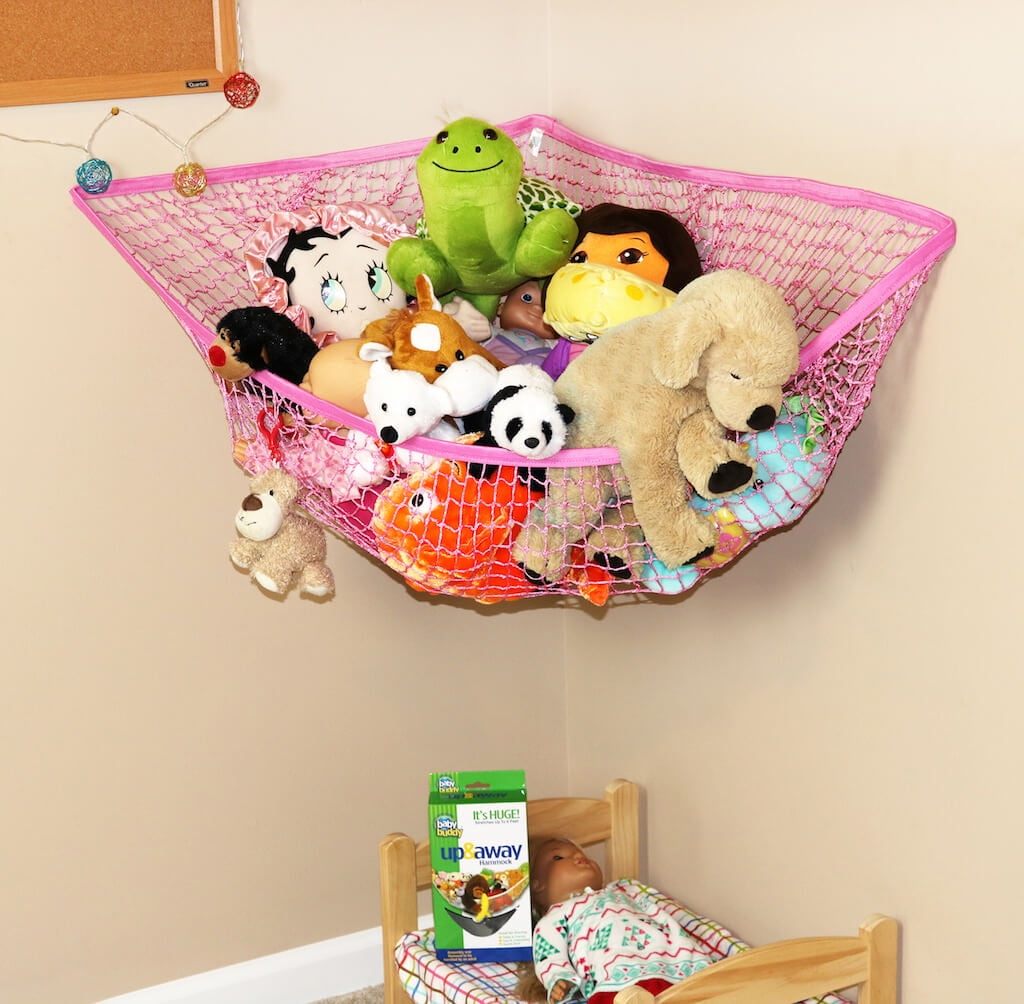 Fashionable, good looking way to keep children’s toys off the ground and out of the way in bedrooms, nurseries, playrooms Durable enough to organize and store toys, dolls, stuffed animals, pet toys, and sports equipment Stretches up to 5 feet and supports up to 25 pounds Easily installation attaches to ceiling, wall, or corners Includes dry wall anchors and screw hooks
