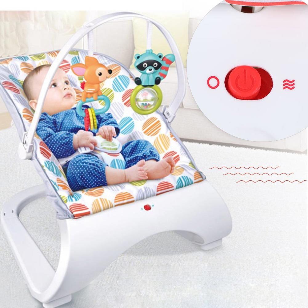 Made from premium materials, breathable, sweat-absorbent, and available for lifespan Three-point secure restraint, whether vibrating or stationary, always the baby Sturdy frame and construction is easy to install and disassemble Detachable and washable seat cushion provides your kids with a cleaner sleeping environment A detachable toy rack can exercise a baby’s ability to grasp something and hands-on capacity