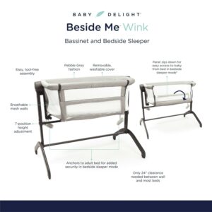Baby Delight Beside Me Infant Bassinet/Bedside Sleeper, Ages 0-5 Months, JPMA Certified, Pebble Grey