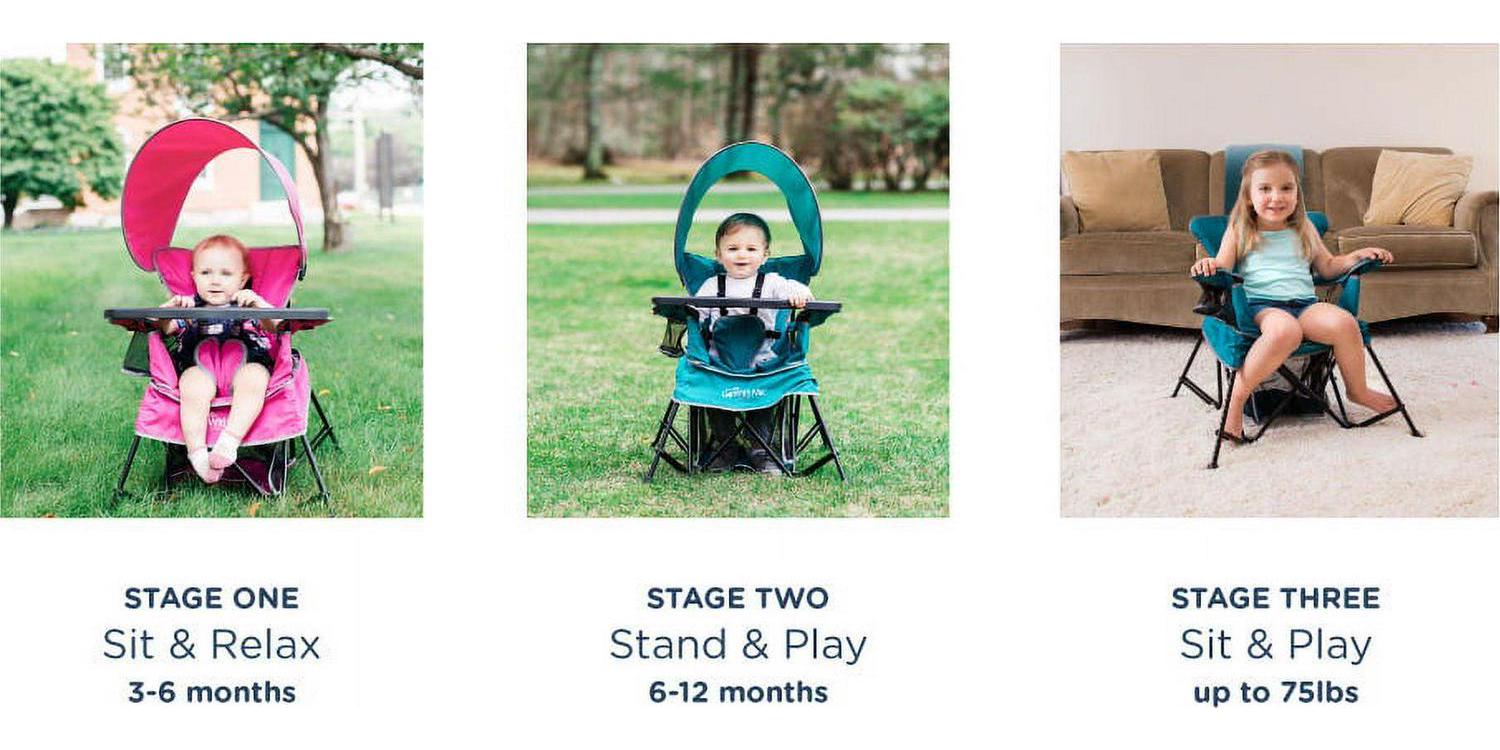 - Chair converts to 3 child growth stages: sitting, standing and big kid