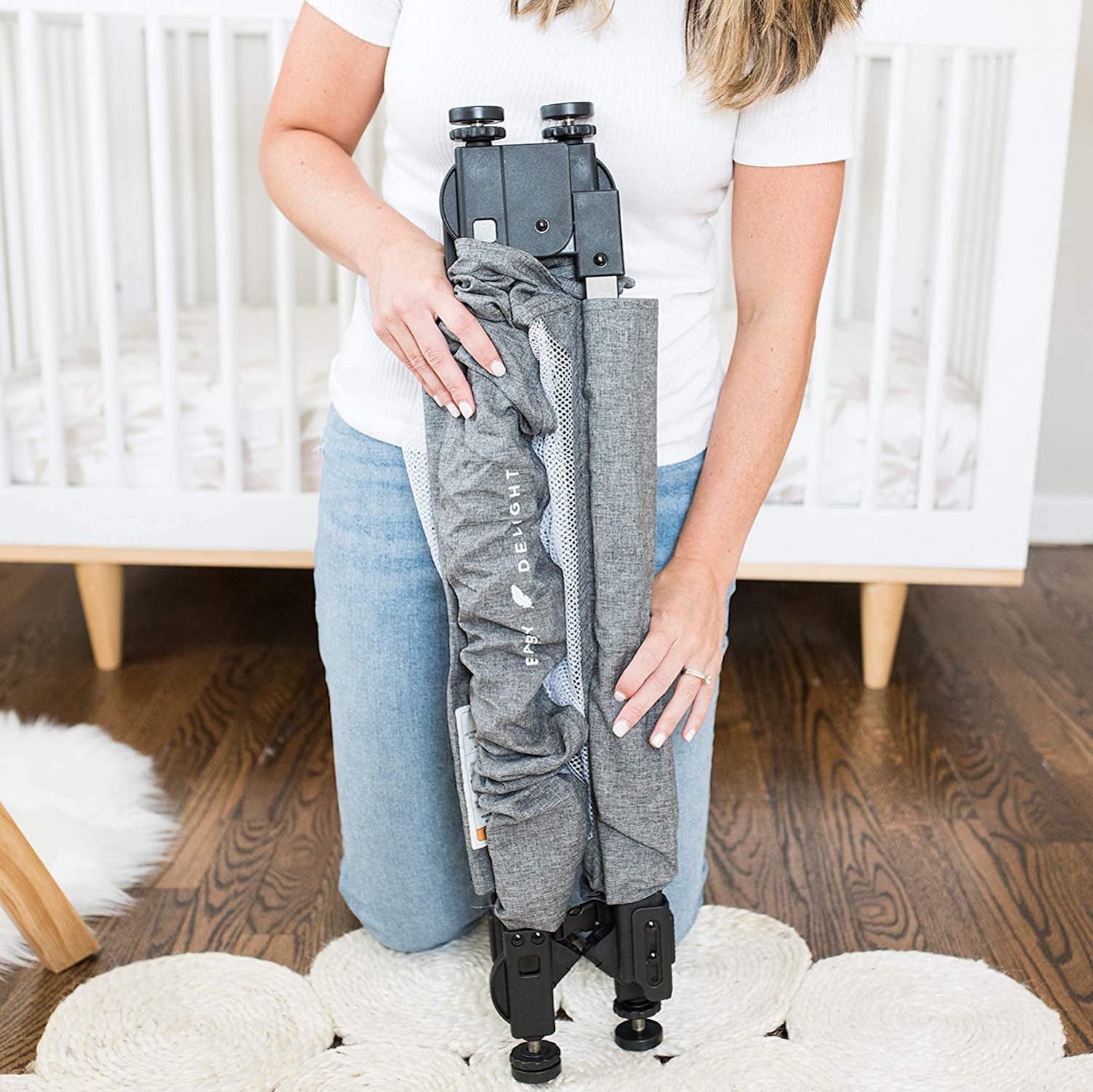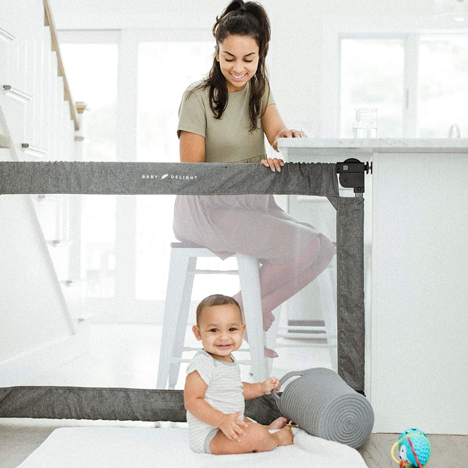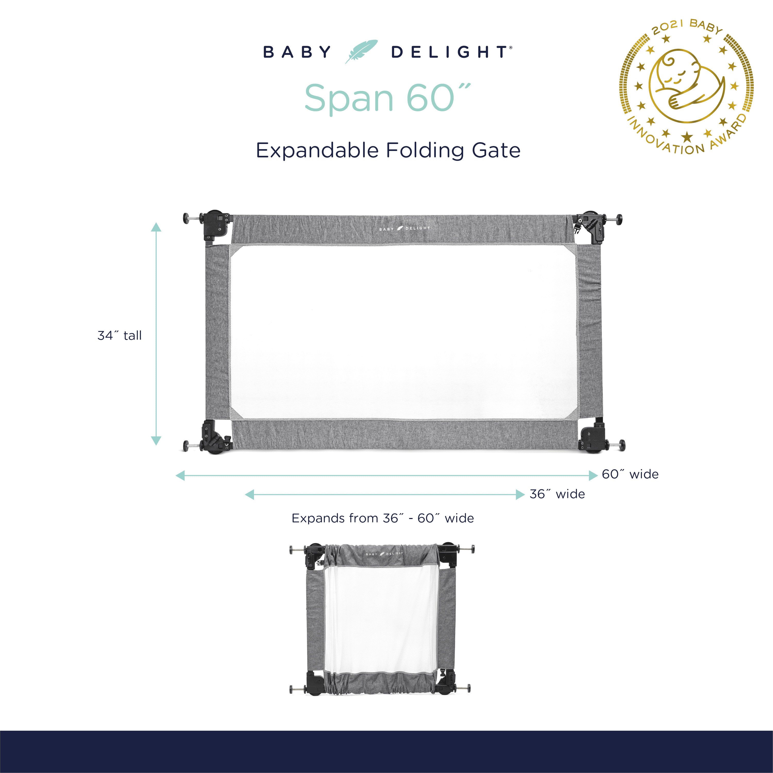 Baby Delight Span, Portable Expandable Folding Fabric Toddler Gate, 36″-60″, Charcoal Tweed SUPER FAST SETUP: Install in 60 seconds or less with no need for tools, hardware, or drilling on your doorframes. Simply remove from the carrying bag, unfold the arms, place in the doorway, and twist out the pressure mounted knobs. YOUR ON-THE-GO SOLUTION: As a parent, we know that life takes you many different places. So we designed this baby gate to be lightweight and easy to fold, fitting snugly into the included carry bag for travel or storage. The gate is perfect for doorways, hallways, and stairs wherever you are. Compact, portable, and convenient. USE FOR VARIOUS OPENINGS: Using the simple knobs on each corner, this expandable baby gate can be expanded to fit almost anywhere. The Span extends from 36”-60” and stands 34” tall. MAXIMUM SAFETY & STYLE: JPMA certified and was designed with maximum safety for the whole family. Our mesh fabric, outlined with charcoal tweed, is meant to fit into any home’s decor. At Baby Delight, we believe that parents shouldn’t have to sacrifice style for safety. Recommended age range is 6-24 months, plus dogs of all ages! GREAT FOR PETS: The Span is also a great pet gate! Includes carry bag for travel or storage
