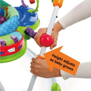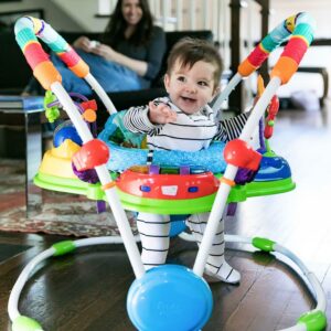 The Baby Einstein Neighborhood Friends Activity Jumper will captivate your baby like no other activity jumper can. With 360 degrees of multi-sensory activities, your baby can swivel and play every which way. The activity center features 3 play stations and more than 12 activities to explore. The light-up piano lets your baby compose their first musical masterpiece, while the spinning frog bead chaser encourages hand-eye coordination. With extra link loops, you can add your babys favorite toys or swap out new playful friends so entertainment is always in reach. The baby bounce chair allows your little one to jump and dance, which helps strengthen their developing leg muscles. With no doorways required, you can watch your baby safely play and grow wherever you need to be. From music appreciation to language introduction, this award-winning Baby Einstein Unisex jumper turns the idea of a baby bouncer into an imaginative world of discovery.