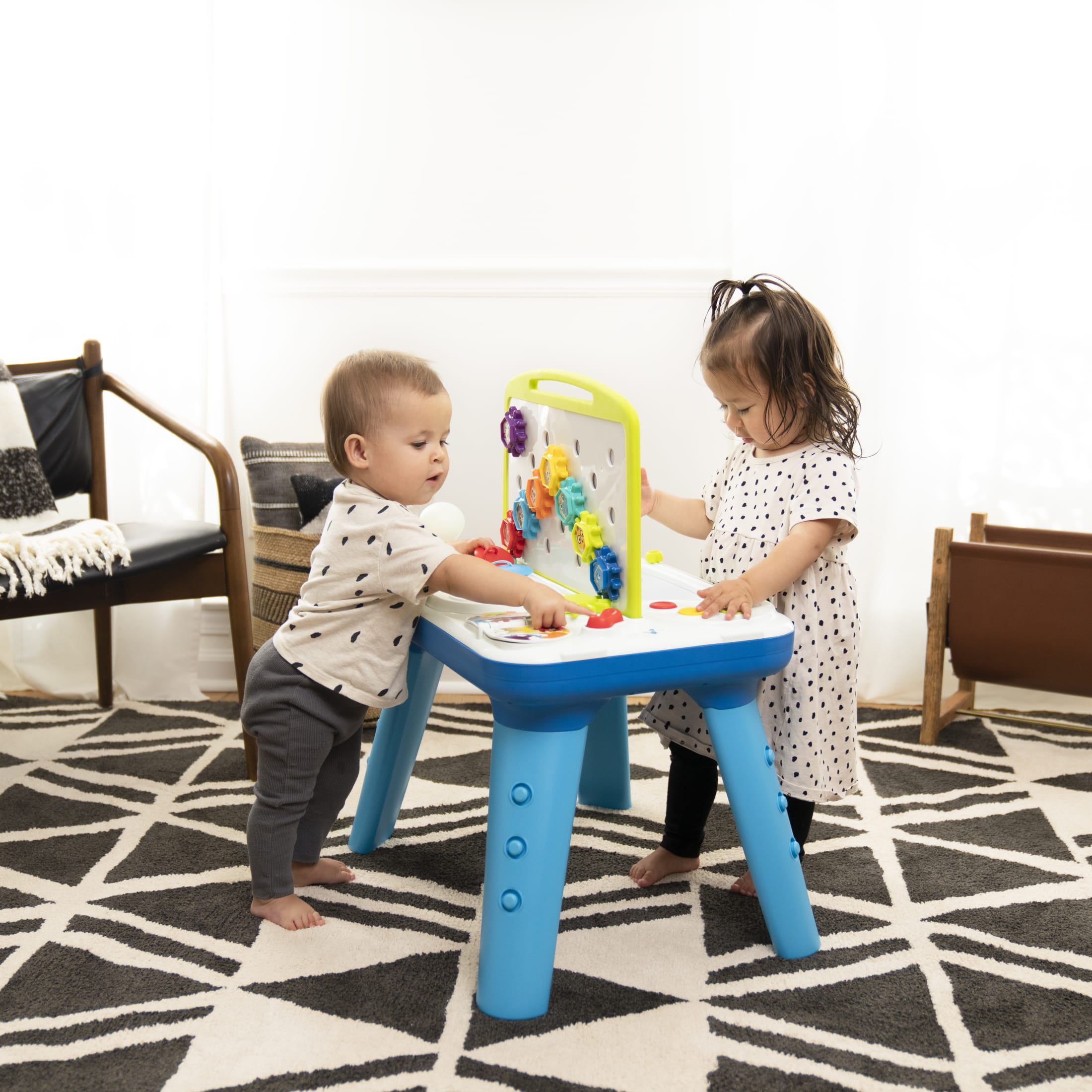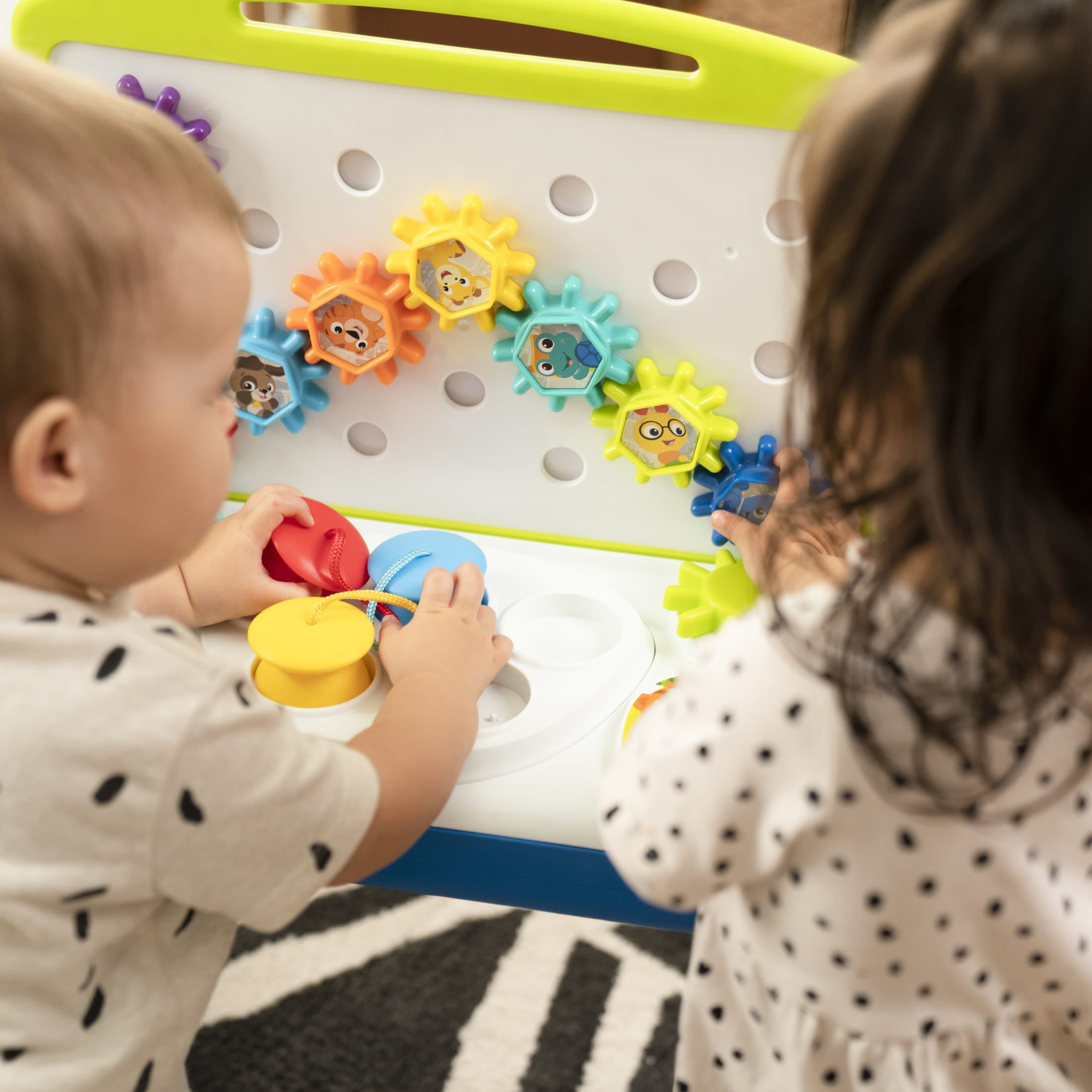 Multiple activities spark babyÕs creativity Removable legs for different modes of play Multiple unisex toddler kids can play at once Includes 65 melodies and sounds Gears, color circuits, lights & more