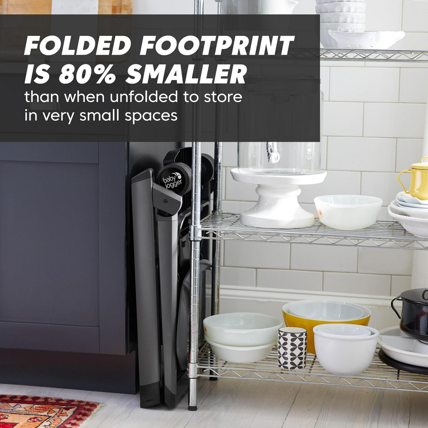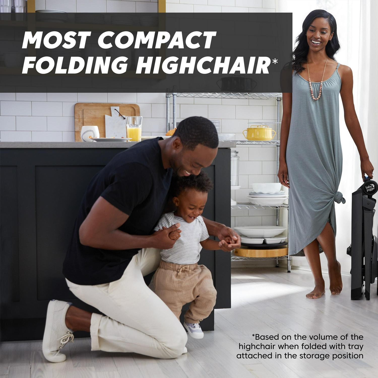 Take back your kitchen with the City Bistro High Chair, the most compact folding high chair*, perfect for families looking for a sleek and slim high chair that quickly folds away for storage in the smallest of spaces. The City Bistro High Chair folds down into a self-standing fold that is 80% smaller than when unfolded. The tray simply clips onto the back of the high chair to keep all the pieces together while folded, and the tray insert can be placed in the dishwasher for cleaning. With 4 different height positions, this high chair will grow with baby and provides added comfort with a plush, premium seat pad for children up to 40 lb. The machine-washable, stain-resistant removable fabrics make cleanup a breeze. Bonus: It’s ready to go out of the box, no additional assembly required. (*Based on the volume of the high chair when folded with tray attached in the storage position)