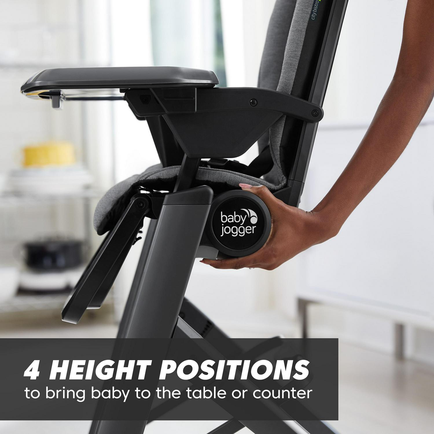 – 4 different height positions so baby can join in for family mealtime, whether at the table or counter