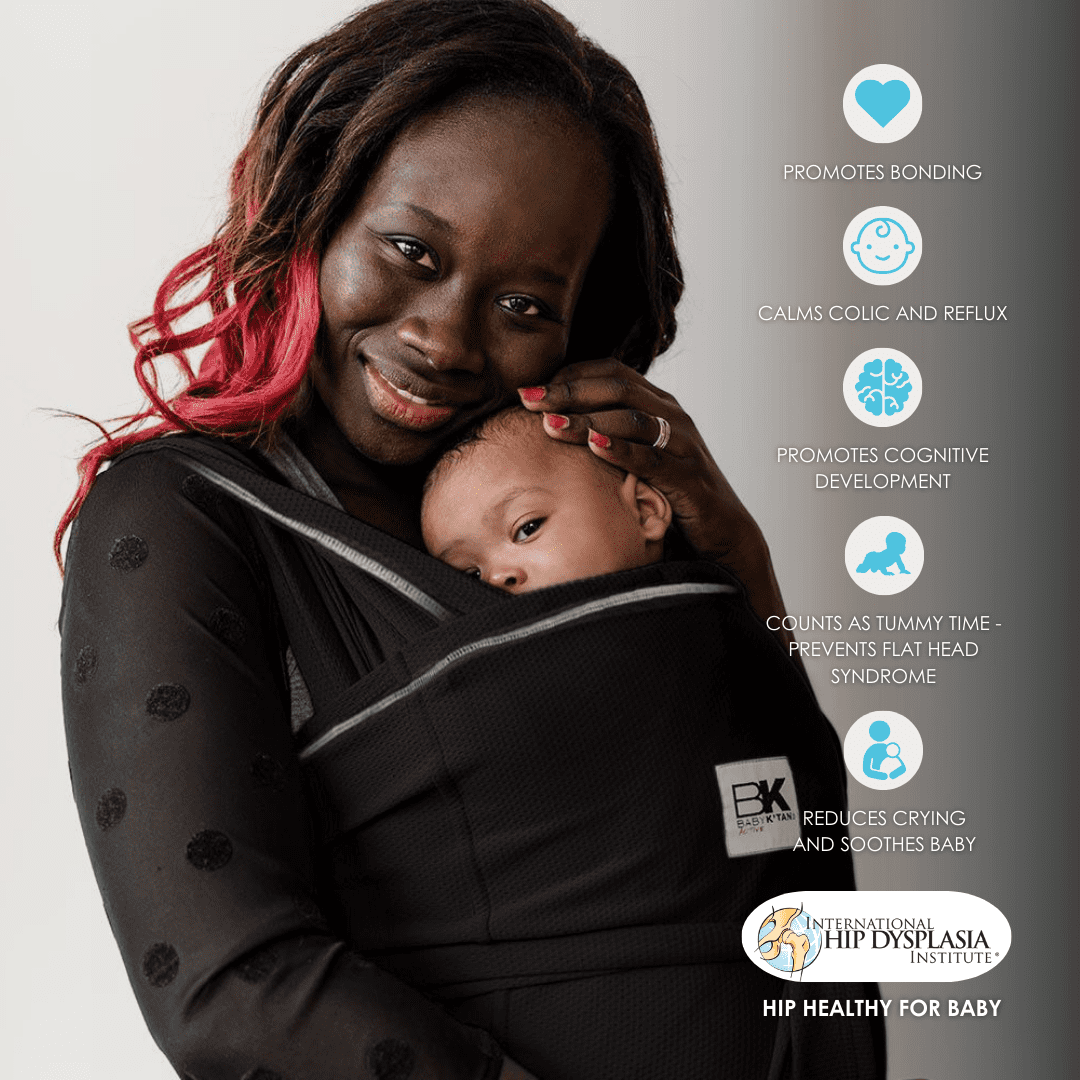 Baby K’tan Active Baby Wrap Carrier – Holds up to 35 Pound, Black, Large (Women 16-20, Men 43-46)