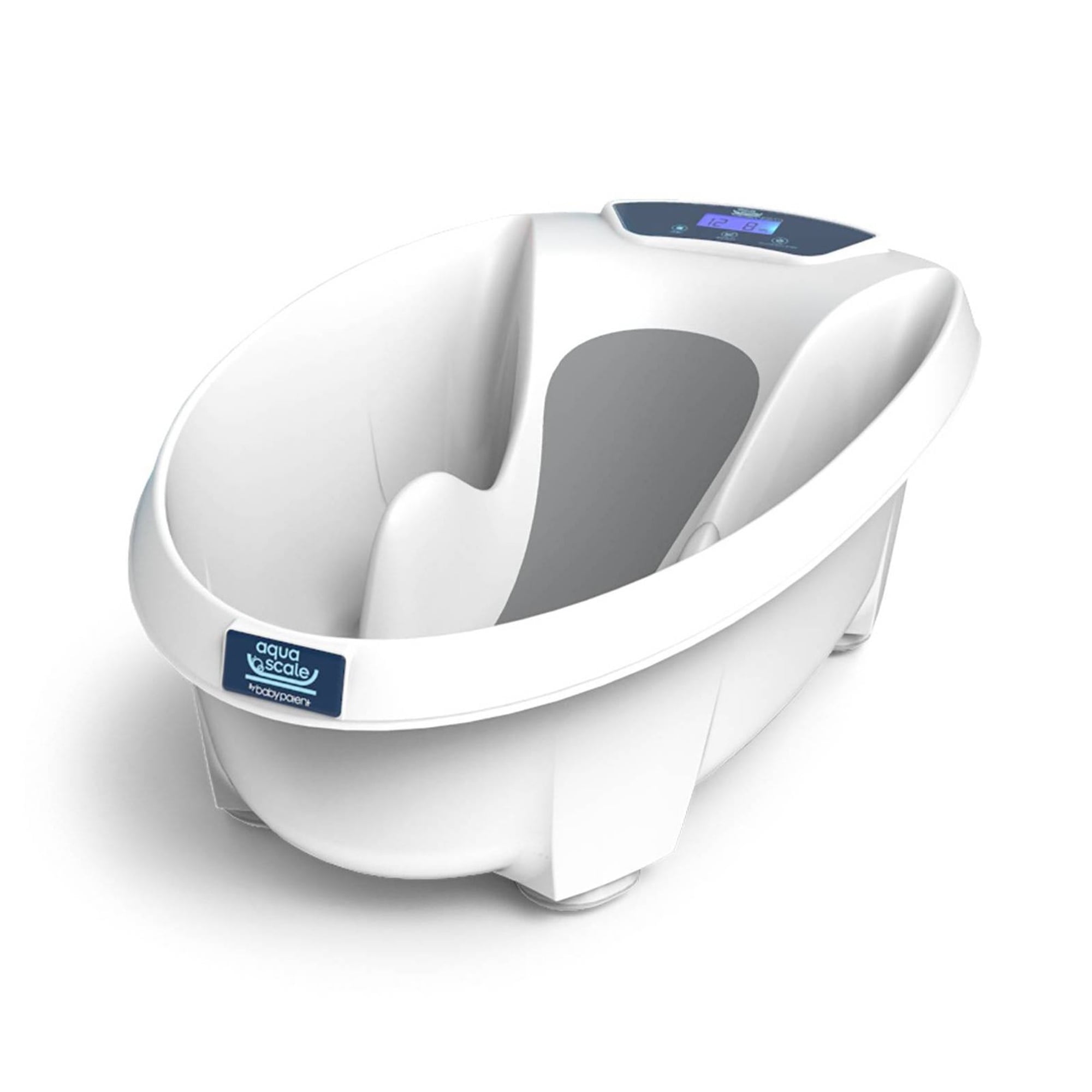 The Next Generation AquaScale by Baby Patent is a 3-in-1 infant tub, accurate digital scale, and water thermometer all in one! This innovative infant tub easily allows you to track baby’s growth featuring a baby scale to accurately weigh your baby while making adjustments for water and movement. Your baby can also be weighed with or without water in the tub. The built-in water thermometer ensures the water temperature is always perfect to keep your little one comfortable, enabling you to make any necessary adjustments to the water temperature while constantly displaying the temperature on the LCD screen. The specially designed unique ergonomic shape of the tub has been created to hold babies in the correct position without slipping, and converts to a second position for toddlers. Once your baby has learned to sit, the AquaScale easily converts to a toddler tub, accomodating children up to two years of age.