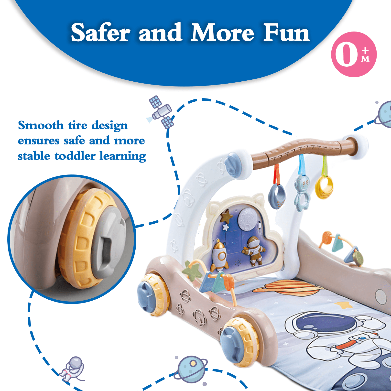 ♪【Kick and Play Piano Gym】 Parents can easily select a mode by flipping the switch on the kick piano of the tummy time mat. The baby can enjoy bright lights and classical melodies. Piano Mode allows babies to kick or tap the keys to create their own song! ♪【Safety & Comfort】Safety is our top priorities. This walker for baby boy 6-12 months is made of high-quality, non-toxic materials, including cotton fabrics with smooth touch care for baby’s skin. ♪【Activity Center】Your baby’s muscles will get a great workout as they kick, rattle, reach, push up, and groovin. Plus, as little ones learn how to activate the music and sounds by pressing the piano keys, they’ll learn that their actions can create fun experiences. ♪【Easy To Clean】 The baby play gym is machine washable for easy cleaning. Simply detach the toy bars and wash the mat on a gentle cycle with mild detergent. ♪【Perfect Gift for Baby】During holidays and special events, this baby activity center is a great gift for babies, bringing both health and happiness to their growth process.