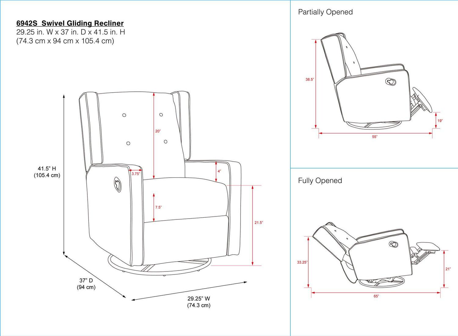 - Features: Reclining, Swivel, Gliders