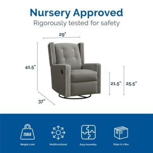 Baby Relax Mikayla 4-in-1 Swivel Glider Rocker Recliner Chair, Gray Microfiber