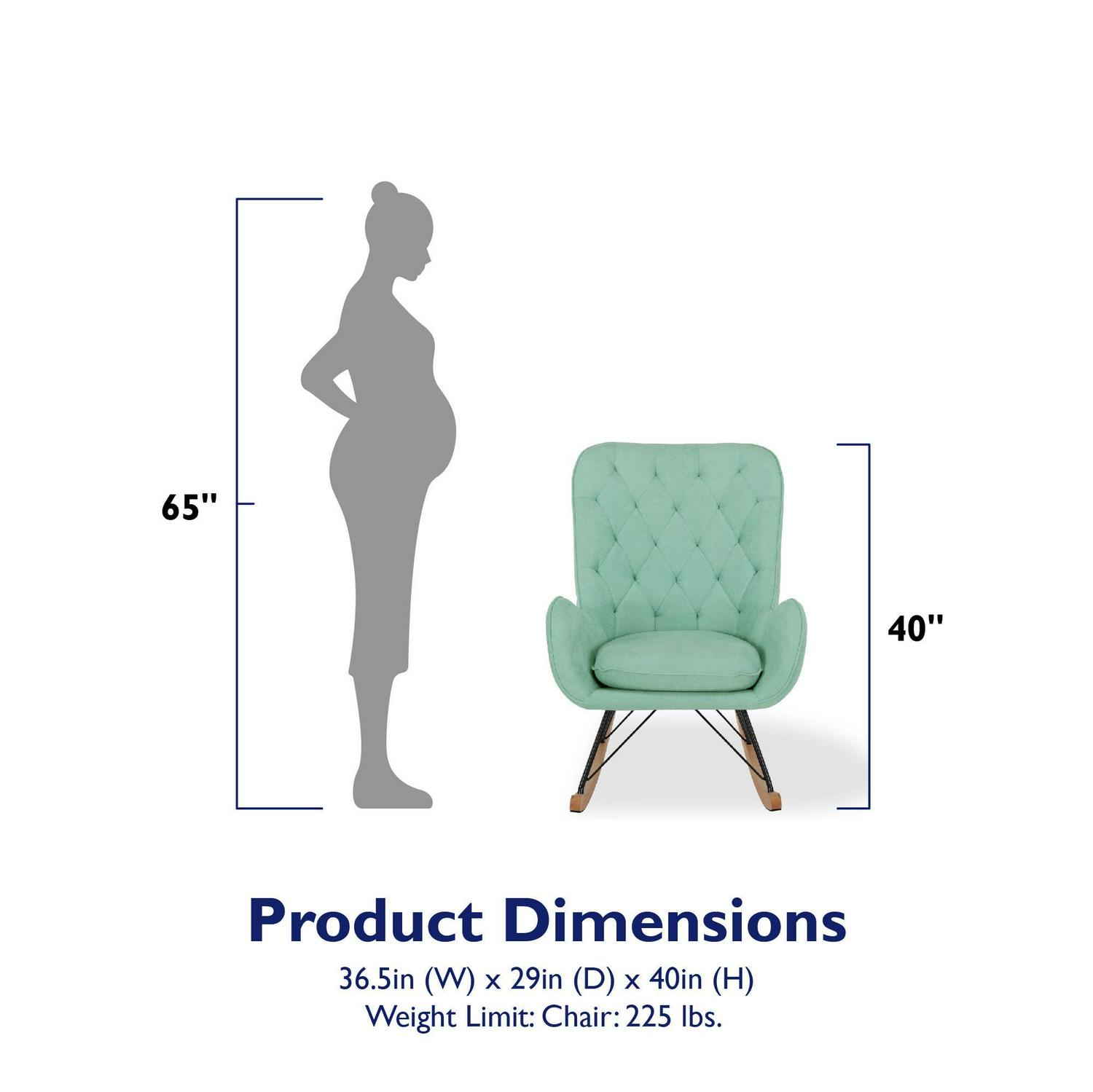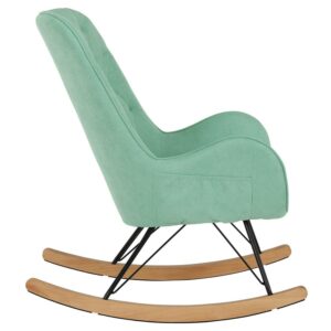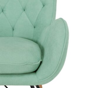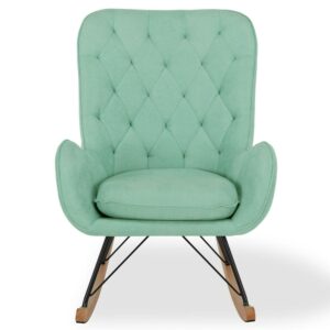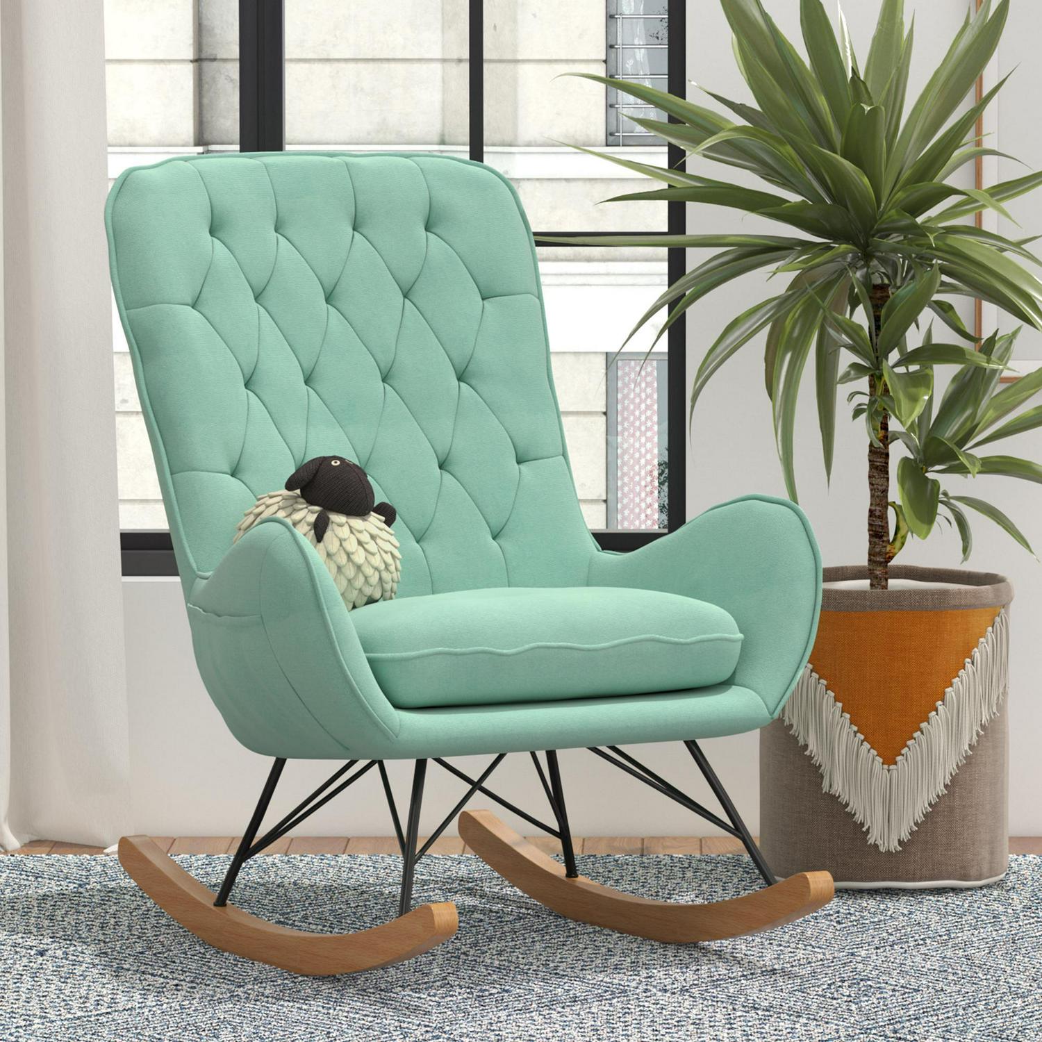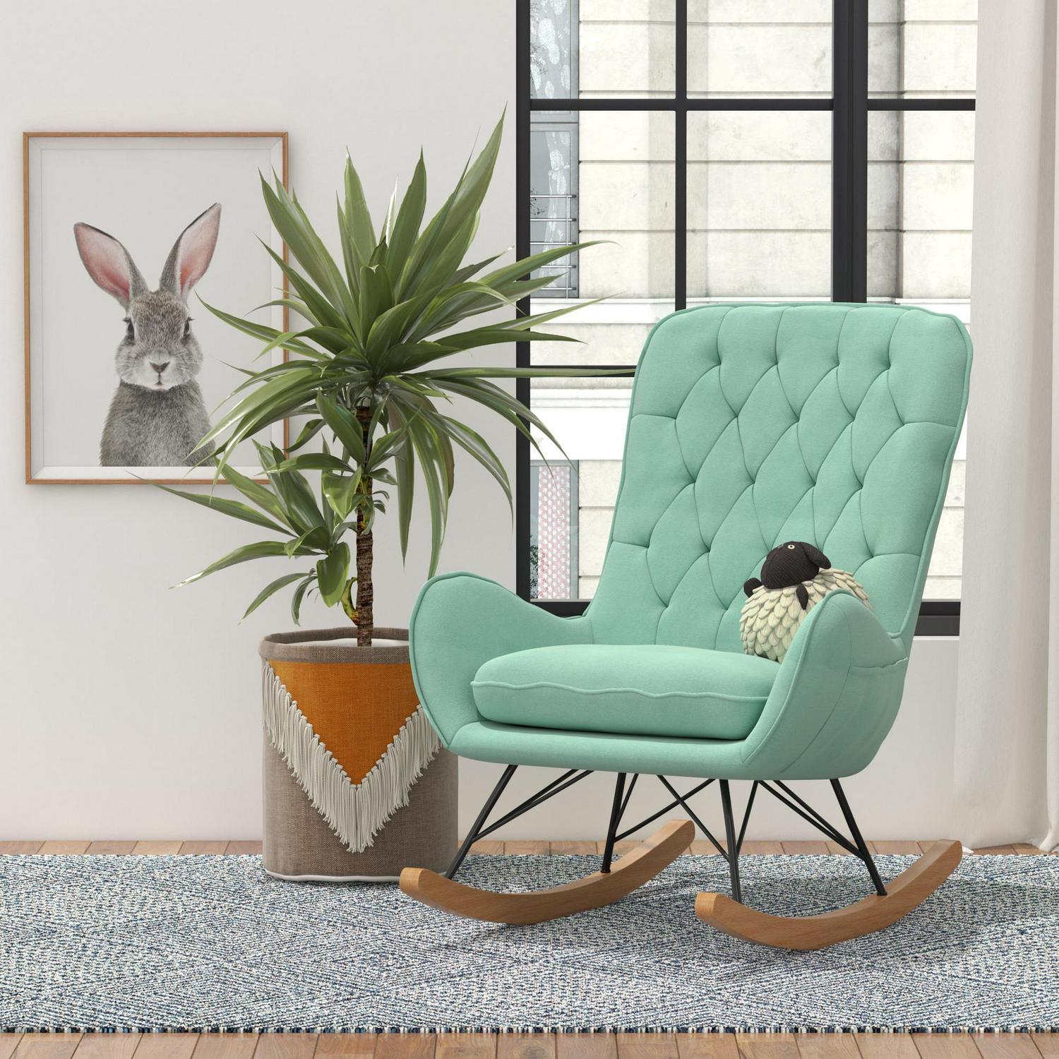 – The Noah Rocker exemplifies mid-century modern design with its large rounded silhouette that features a diamond-tufted backrest.