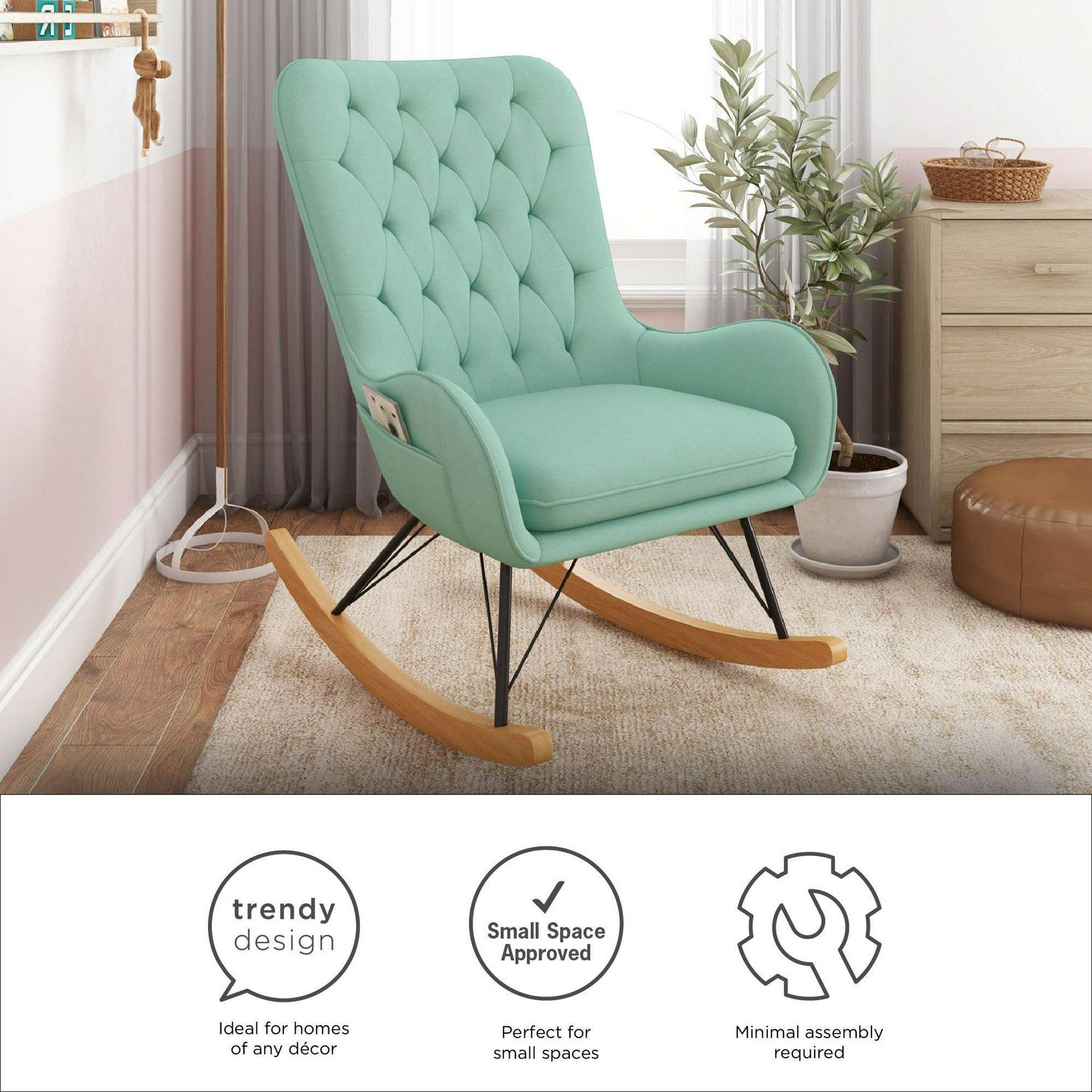 Baby Relax Noah Rocker Chair with Side Storage Pockets, Teal