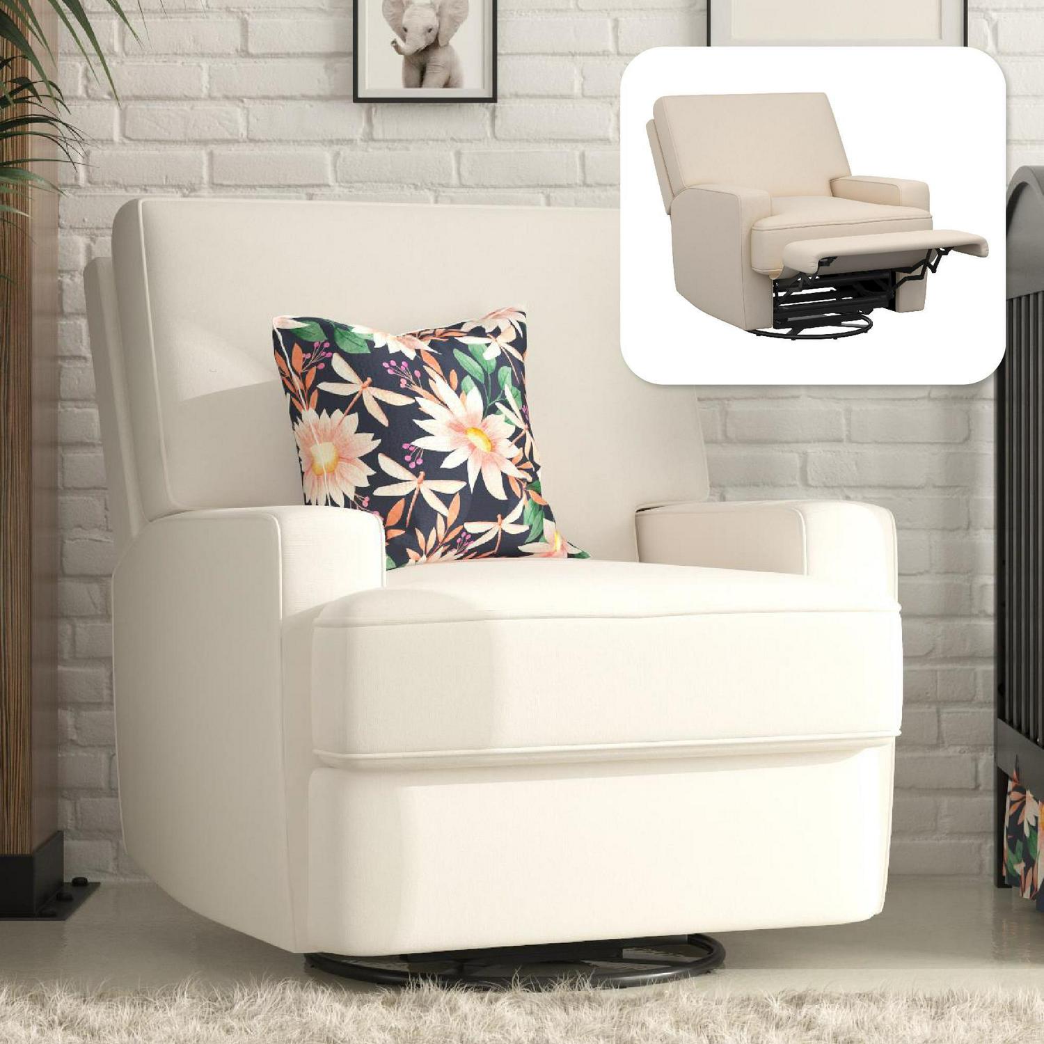 Baby Relax Rylan 4-in-1 Swivel Glider Rocker Recliner Chair, White Linen