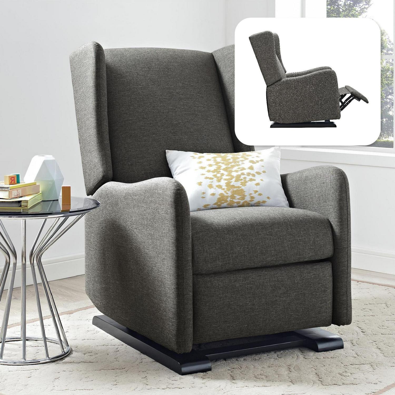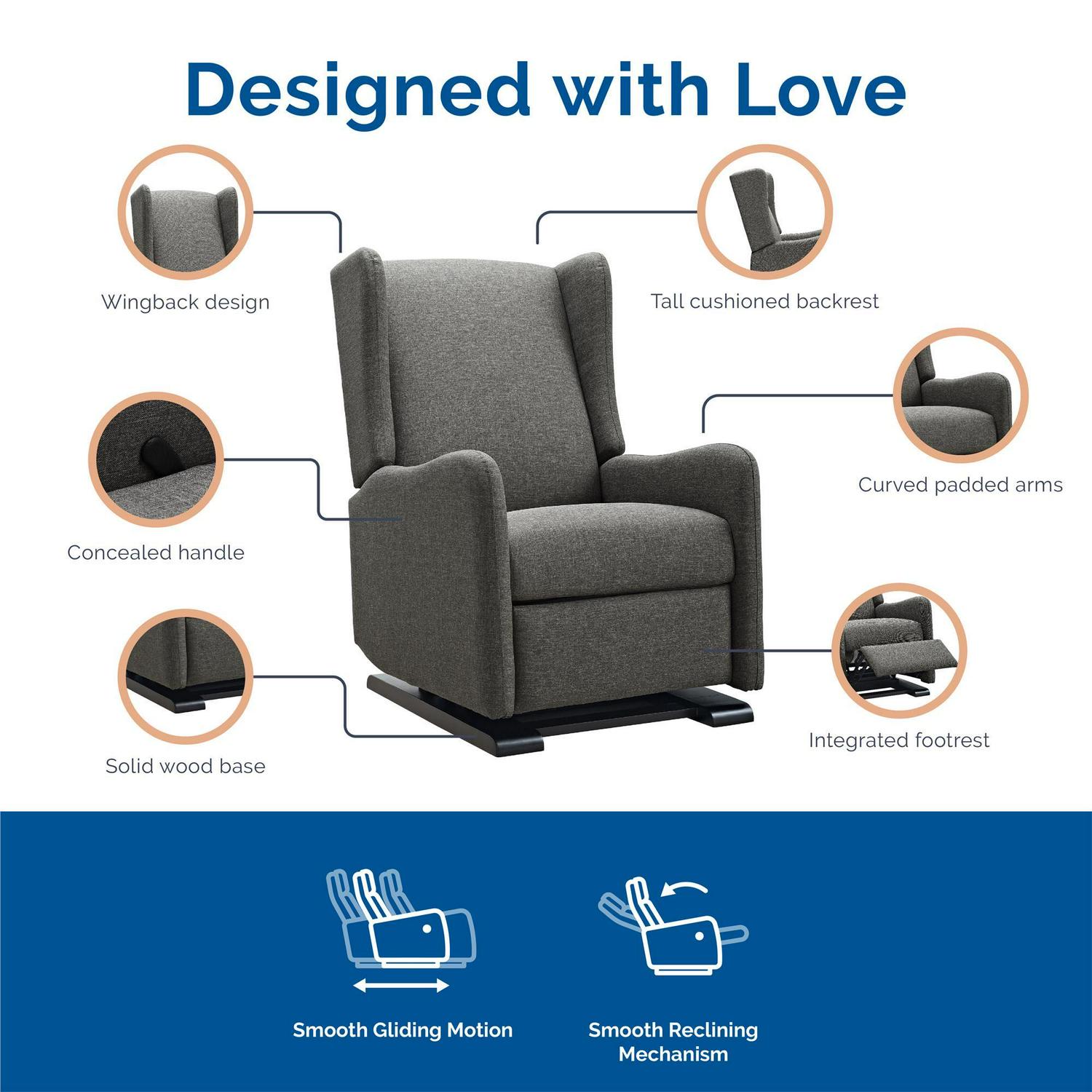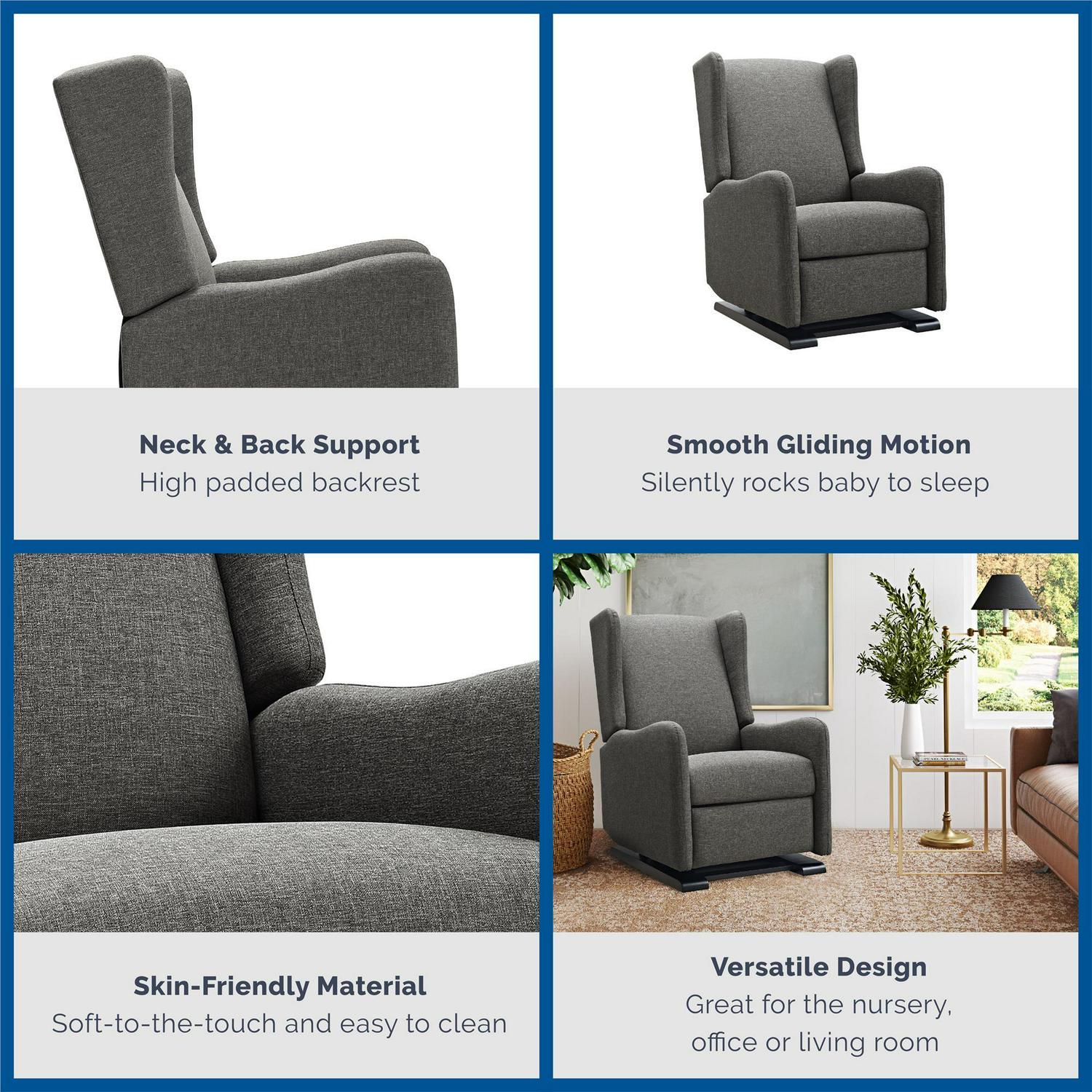 Baby Relax Rylee 3-in-1 Tall Wingback Glider Rocker Recliner Chair, Gray Linen
