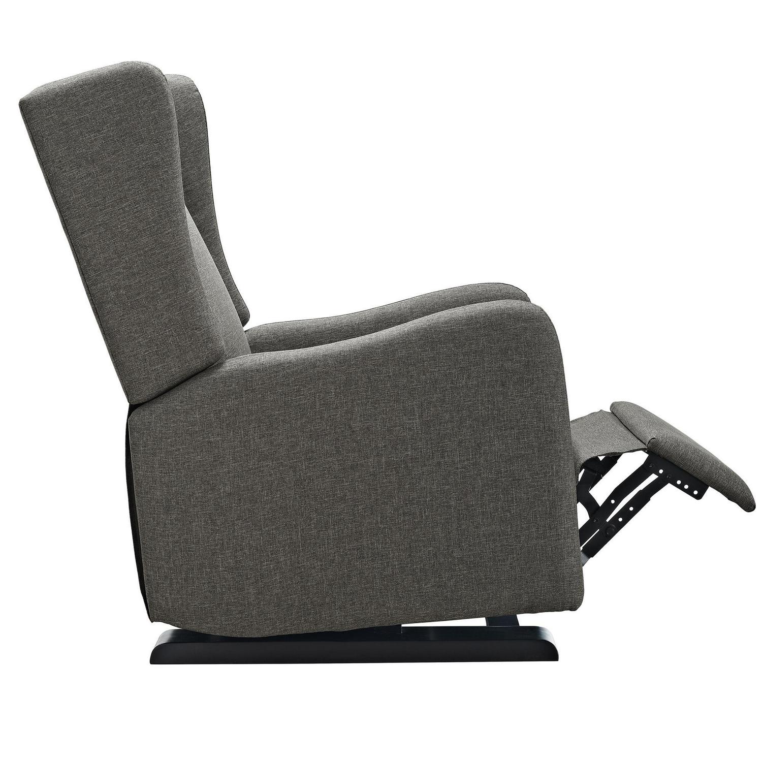 – Contemporary style 3-in-1 glider rocker recliner with classic wingback shaped serpentine arm design and soft upholstery serves steady rocking, reclining, and gliding chair activity to coax your infant to sleep inside or outside the nursery