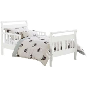 Baby Relax Sleigh Kids Wood Toddler Bed with Safety Guardrails, White