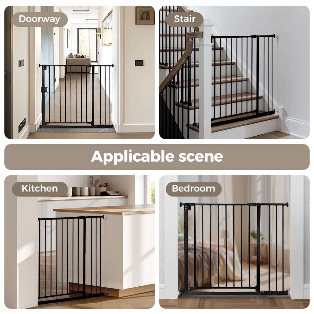 Baby Safety Gate, Baby Gates for Top Stairs Doorway, 29.5”- 40.5”Wide Pressure Mount, Black