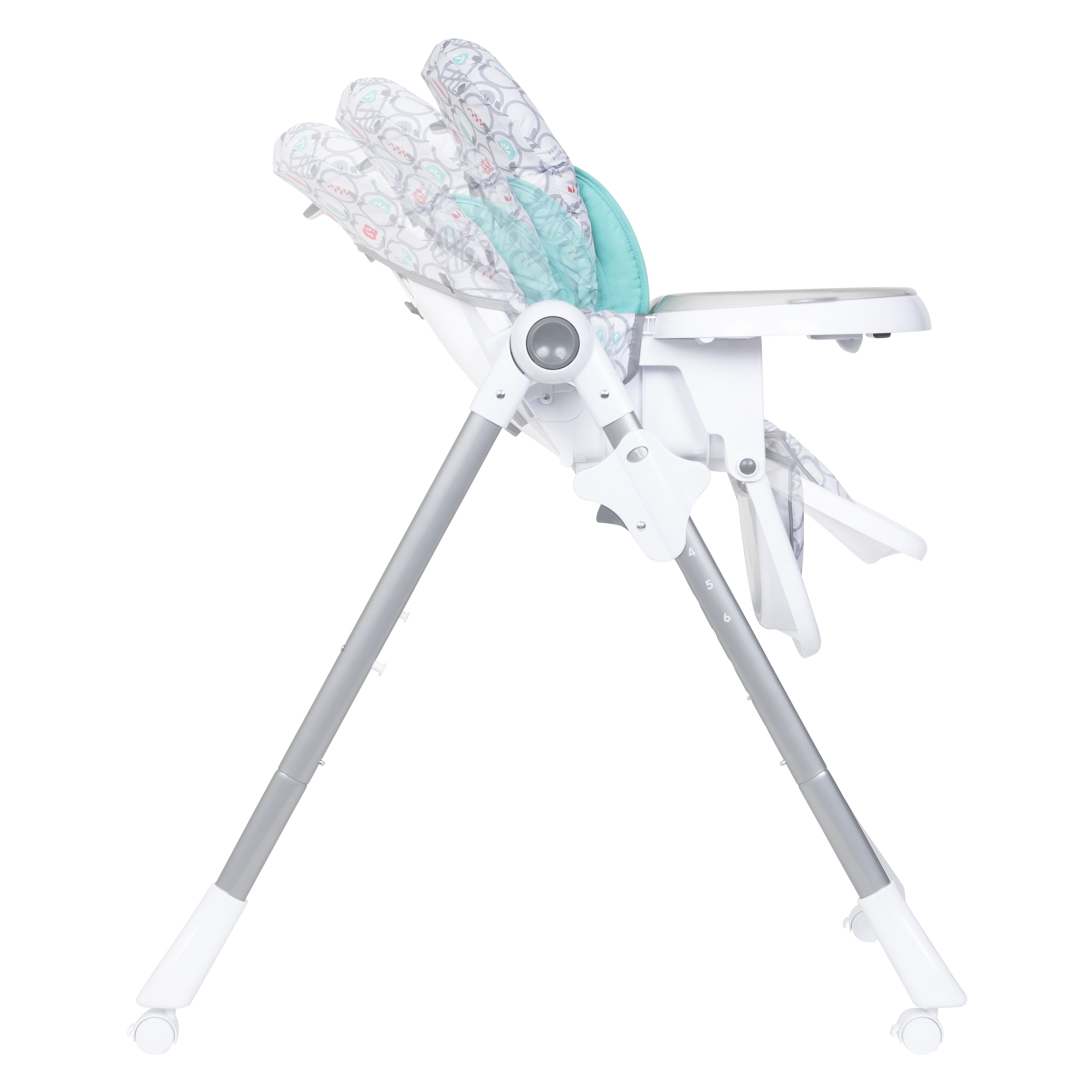 Versatile High Chair: 6-position height adjustment with 3 recline positions Dishwasher-Safe Tray with Cup Holder: Dishwasher-safe tray with removable insert. For convenient storage, the tray can easily be stored on the lower frame of the high chair. Bright, vibrant pattern is gender neutral and adds a pop of color to any room Comfortable & Safe: 5-point safety harness and seat insert provide elevated comfort and safety during meal time.