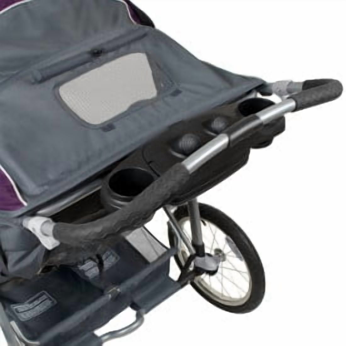 Take your family jogging with the Baby Trend® Expedition® double jogger. Made for two children, this jogging stroller features a locking front swivel wheel that allows you to keep the front wheel in place while jogging. If you’re out for a stroll, simply unlock the front wheel for greater maneuverability. For your convenience, the parent tray includes two cup holders and covered compartment storage. For your children’s comfort and safety, the double jogger features a ratcheting shade canopy, a multi-position reclining seat, and adjustable 5-point safety harnesses. Store your children’s necessities in the large storage basket and you’re ready to roll. Know you’re traveling safely in this sturdy, lightweight double jogger that’s certified by the Juvenile Products Manufacturers Association. At the end of your trip, quickly and easily fold the stroller into a compact unit.