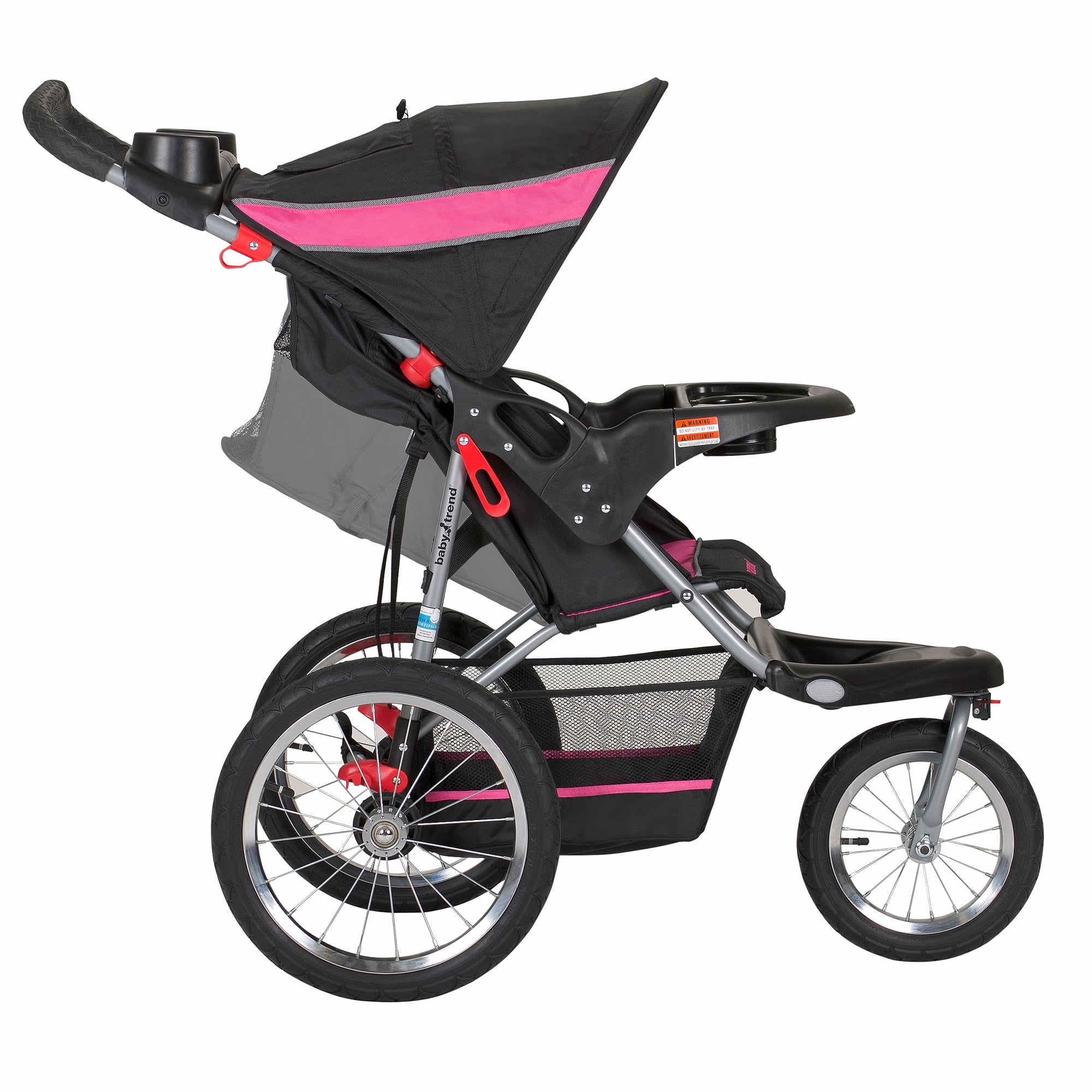 Baby Trend Expedition Travel System Stroller, Two-Tone Pink: Baby Trend travel system car seat is designed for infants up to 30 lbs and 30″ Quick-release 16″ rear and 12″ front all-terrain bicycle tires Lightweight jogger travel system stroller with car seat Jogging stroller is great for walking or jogging Baby Trend Jogger Baby Travel System, Millennium, includes highly-rated Baby Trend Easy Flex Infant Car Seat Front swivel and locking wheel for easy jogging or strolling Jogger baby travel system folds easily for storage Multi-position reclining seat Lightweight steel frame Five-point safety harness Covered storage basket Parent tray with two cup holders and pockets Adjustable canopy with covered sunroof ratchets to block sun and wind Both jogger and infant car seats have 5-point safety harnesses