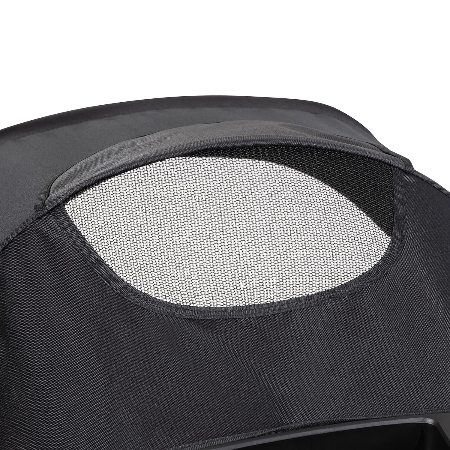 Optimal storage solutions with a large storage pouch integrated on the back of seat Comfort Cabin with UPF 50+ sun protection canopy, plush fabrics and padding Handle with removable leatherette cover for comfort and differing grip options Parent’s tray equipped with two cupholders and center compartment Spacious basket with rear and front access Quick, easy and compact one-hand center fold