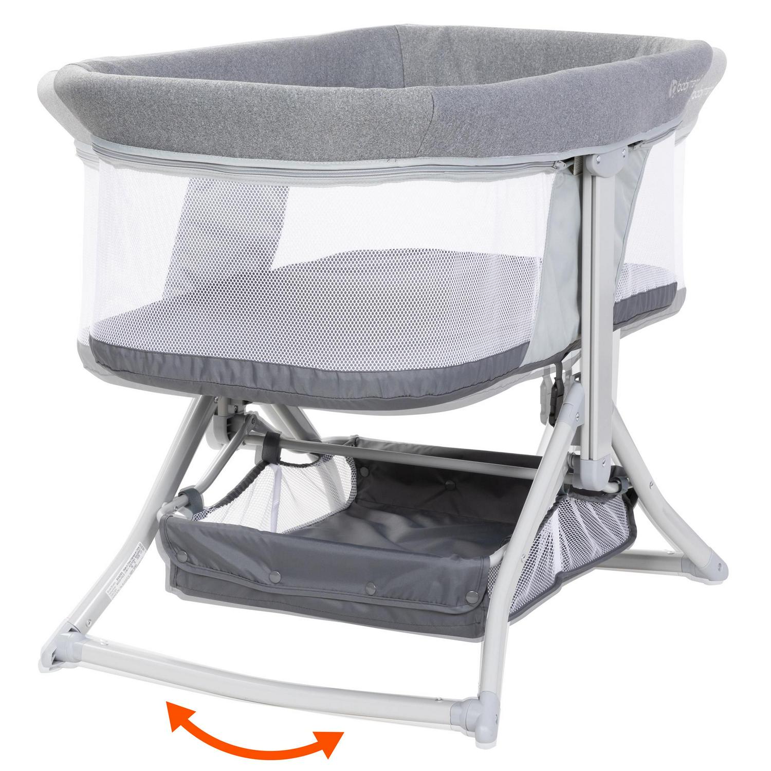 Designed with travel and portability in mind, the Baby Trend Quick-Fold 2-in-1 Rocking Bassinet is equipped with features and mechanisms to make assembly and storage so much easier! The innovative quick-fold mechanism allows for easy and quick setup and putting away. With its lightweight aluminum frame, the Quick-Fold 2-in-1 Rocking Bassinet easily converts from a bassinet into a Rocker without additional tools or parts. With the included hand-carry bag, traveling with kids is easier and more convenient. For enhanced comfort, the bassinet is made with premium fabric and tailored padding. Your baby will love the comfortable sleeping environment! For safety, the mesh side panels promote airflow, giving maximum breathability for your little one, and a lay flat design. The soft grey fashion is gender neutral and will compliment your home. We recommend this product for babies from birth to 5 months.