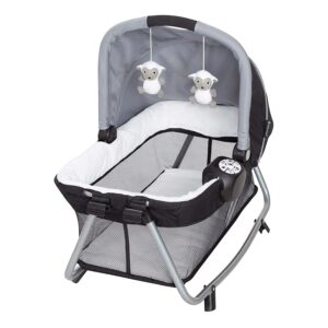 – Complete nursery center includes 2 removable Rock-A-Bye Lay Flat Bassinets with canopy and carry handle