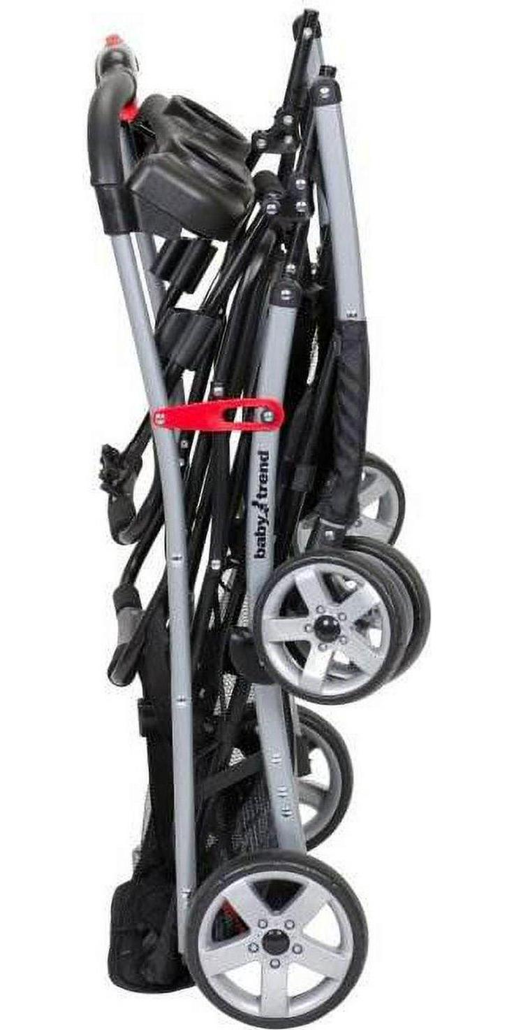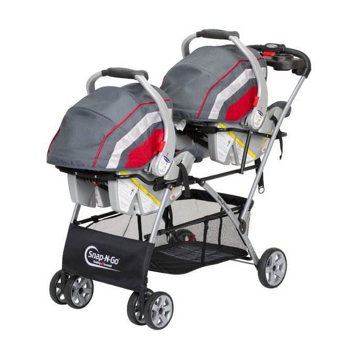 Accommodate your growing family. New from Baby Trend, the Snap N Go Double Stroller Frame is made to fit all Baby Trend infant car seats and instantly turn your car seats into a double stroller. No need to disturb your kids during the transition from car to stroller, just snap both car seats into the frame and off you go. With great additional features like a parent tray and extra large storage basket, the Snap N Go is ideal for families on the go. Designed to accommodate most infant car seats, this lightweight stroller frame features an easy one-handed fold that makes it simple to stow, even with a child in your arms. Please Note: Car seats are not included.