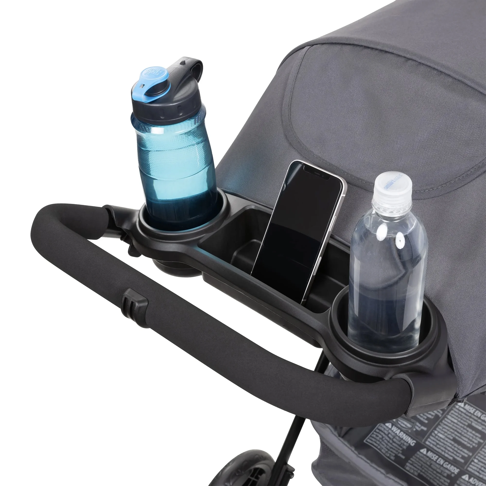 Seat Back Rolls up to convert into Mesh Air-flow with Pillow for Child Comfort Cabin – Padded Seat with UPF 50+ Canopy Protection Parent Tray with 2 cup holders & Center storage Child Tray with 2 cup holders & Center Storage Large Basket with Front and Rear Access One Hand In-Seat Center Fold Includes the all-new EZ-Lift 35 Infant Car Seat with integrated Side Grip handle for ergonomic carrying The car seat holds a child from 4 – 35 lb The carry handle of the car seat can be used as an anti-rebound bar in forward position, this helps prevent rotation of the seat in the event of a rear collision