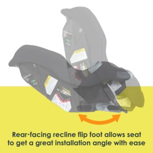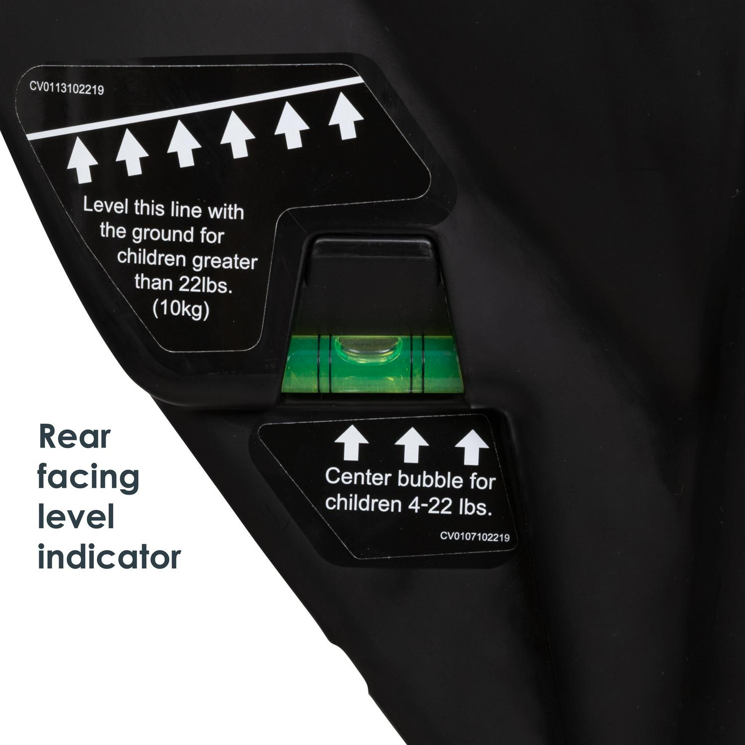 – Immediate Right Installation Angle: Rear-facing recline flip foot allows for great installation angles with ease; the built-in bubble level indicator helps find the correct angle